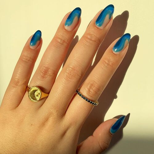 Это просто очаровательная смесь синего и нейтрального оттенков в этом маникюре. Он подойдет к любому образу: от повседневного до праздничного.
