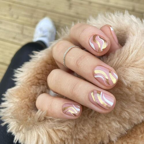 Нейтральные и приглушенные цвета привносят веселье в этот игривый дизайн и этот маникюр с легкостью дополнит платье любого цвета.