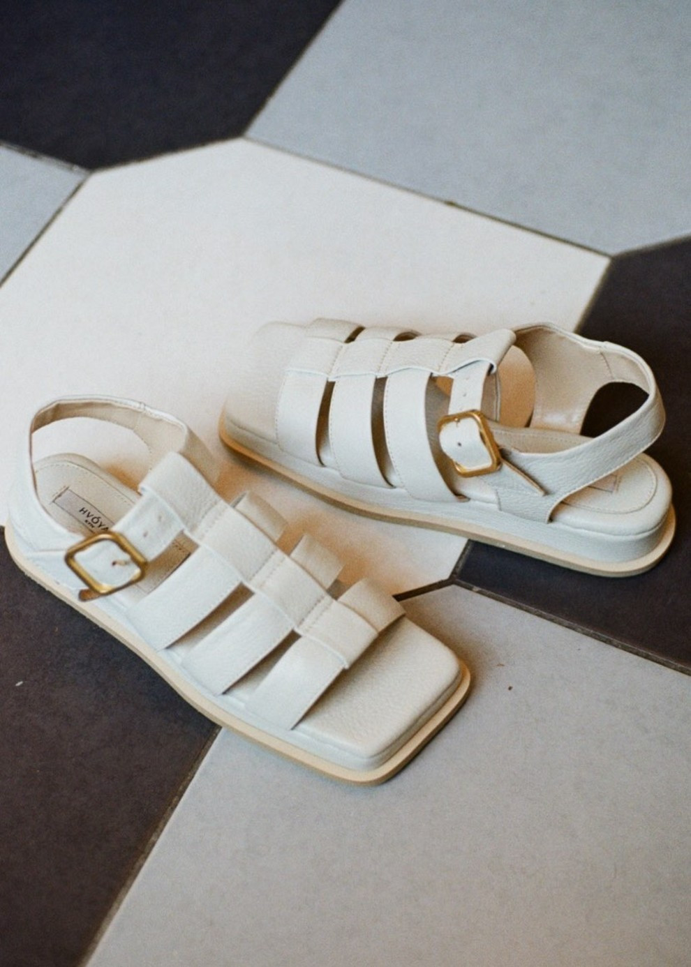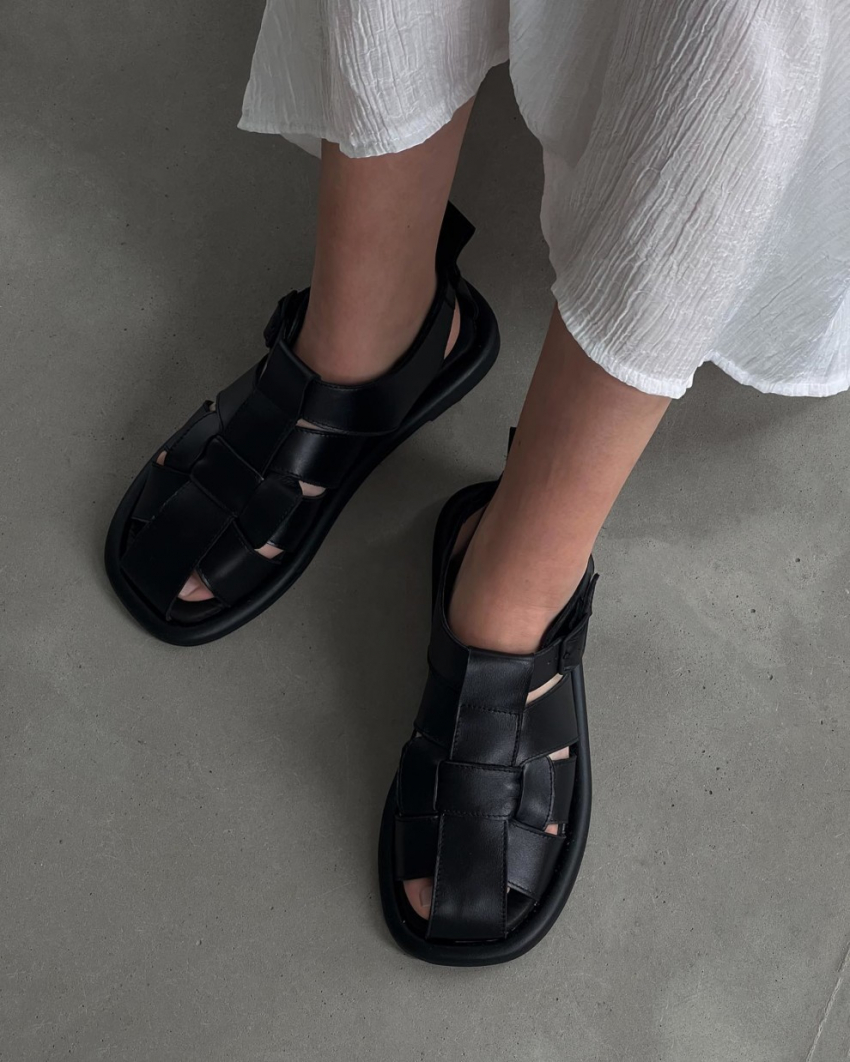MossiРибальські сандалі не тільки модне взуття цього літа, а ще й, що важливо, практичне. Так, завдяки м'якій шкірі, зручному фіксуванню на нозі та надміцній підошві в сандалях Fisherman буде комфортно провести цілий день, а також не виникне питань, із чим їх носити, адже вони легко римуються з будь-яким гардеробом – від маскулінних брючних костюмів до романтичних літніх суконь. У колекції Mossi, крім чорних і коричневих моделей, ви знайдете білі гумові пари, у Max Mara зустрінете модель на витонченій танкетці, а у Versace – сандалі на тонкій підошві з численними чорними ремінцями. Знайти модну альтернативу європейським брендам можна і на українському ринку: чорні мінімалістичні пари COOSH чи елегантну модель у молочному кольорі HVOYA.