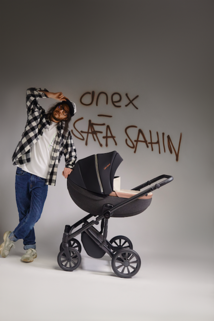 Сафа Сахін, голова відділу дизайну кросівок Balmain, відомий своїми сюрреалістичними проєктами. Узявши за основу модель Anex m/type PRO, корпус якої зроблено зі 100% перероблюваного спіненого поліпропілену, він надав візку футуристичності за допомогою простих геометричних форм та градієнта.Ще одним учасником колаборації стала студія FFFACE.ME, яка доповнила візок онлайн-грою Xylophon, у якій можна створювати музику за допомогою технології доповненої реальності. Для того, щоб активувати музичну гру, треба навести Instagram-фільтр зі сторінки Anex на логотип Safa Sahin на корпусі. Гра має два режими: один розвиває пам’ять малюка, а інший — стимулює до творчості. Оскільки гра відбувається в режимі сторіз, батьки також можуть поділитися процесом гри з дитиною та її досягненнями на власній Instagram-сторінці.