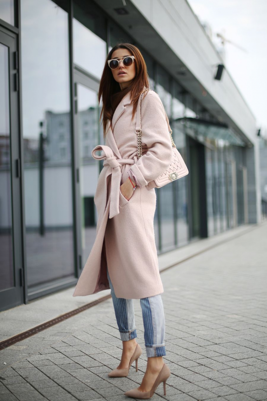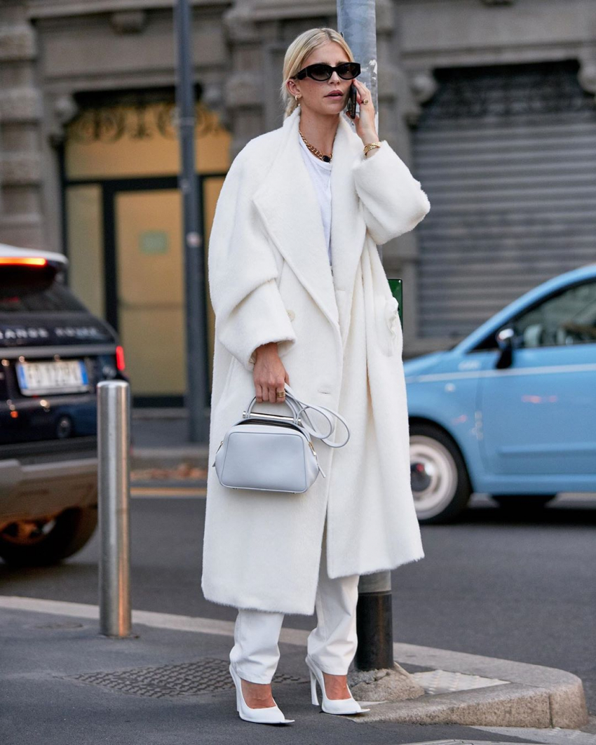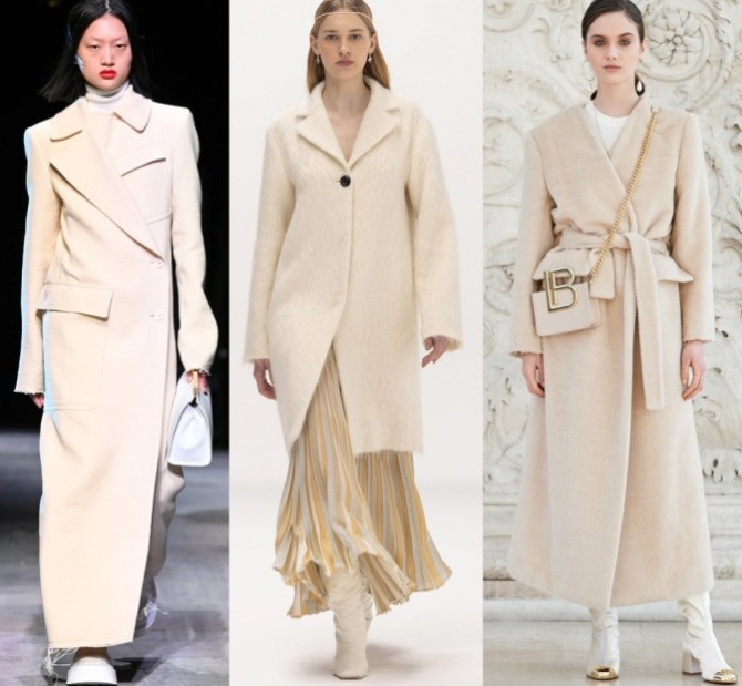 - Молочный. Идеально подходит девушкам с летним и зимним цветотипом. Чтобы образы выглядели гармонично, пальто молочного оттенка следует комбинировать с нарядами на основе зеленого и синего.