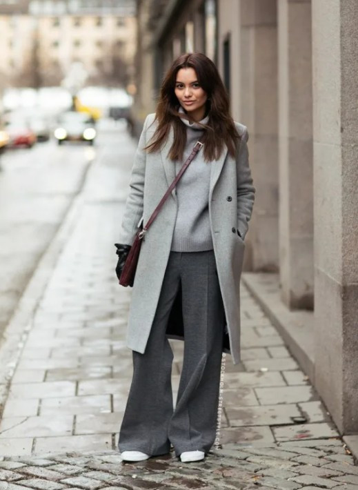 Это лучшая модель для зимы 2023 года. Объемное пальто с поясом считается универсальной верхней одеждой для холодного сезона. Благодаря простому крою и минималистичному дизайну фасон отлично вписывается в базовый гардероб. Его можно надеть поверх классического костюма или элегантного платья миди, дополнив ботильонами на высоком каблуке.