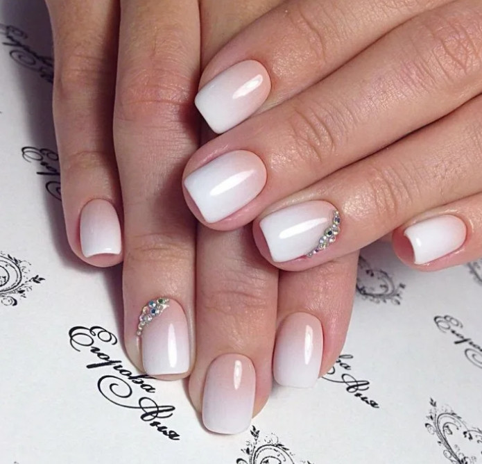 Маникюр в стиле градиент или омбре – еще одна нестареющая классика. Объединения френча и омбре дает поразительный эффект. Маникюр на короткие ноготки с этим видом дизайна часто становится самым любимым. Разнообразить его можно при помощи фольги, втирки, камифубуки и прочих элементов.