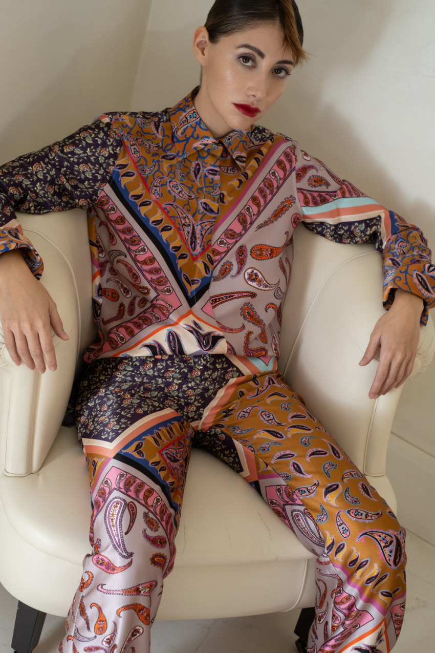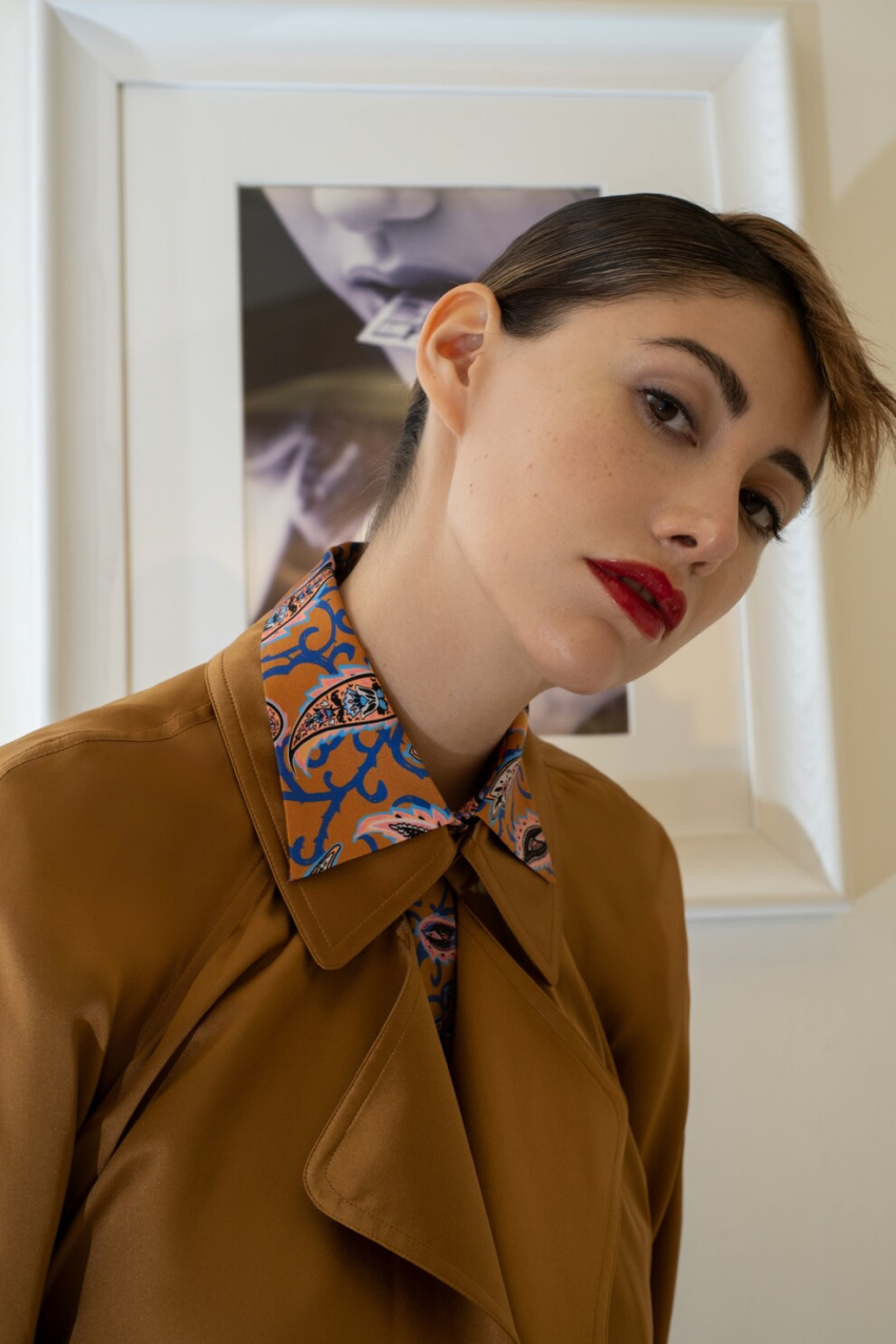Принт всему головаПринты способны мгновенно придать настроения любому образу – в коллекции Barbara Bui весна-лето 2022 особого внимания заслуживает брючная двойка из шелка с принтом пейсли. Уравновесить образ можно лаконичным тренчем теплого оттенка.