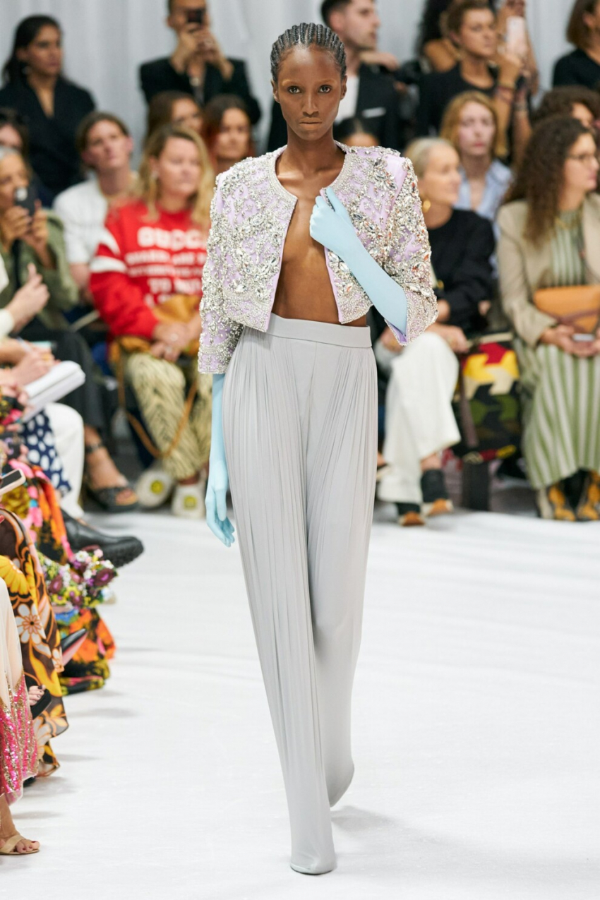 В этом сезоне перчатки исполняют не только защитную функцию и играют роль аксессуара, согревающего руки от холода, но, в первую очередь, являются модным элементом образа. Символом женственности и элегантности стали перчатки выше локтя, которые в свое время носили иконы стиля XX века: Одри Хепберн, Мэрилин Монро, Марден Дитрих и Грейс Келли. В новых коллекциях дизайнеров весна-лето 2022 вы можете встретить кожаные, виниловые, трикотажные, атласные, кружевные и шелковые длинные перчатки, отсылающие к эстетике 1920-х годов. Если Gucci продемонстрировали торжественный образ, достойный красной дорожки, соединив атласное платье в пол с пушистым боа и лакированными черными перчатками, то Balenciaga предложили дополнить сексуальный комбинезон с принтом такими же аксессуаром в тон. В подобном образе недавно была замечена Ким Кардашьян на премии People's Choice Awards.