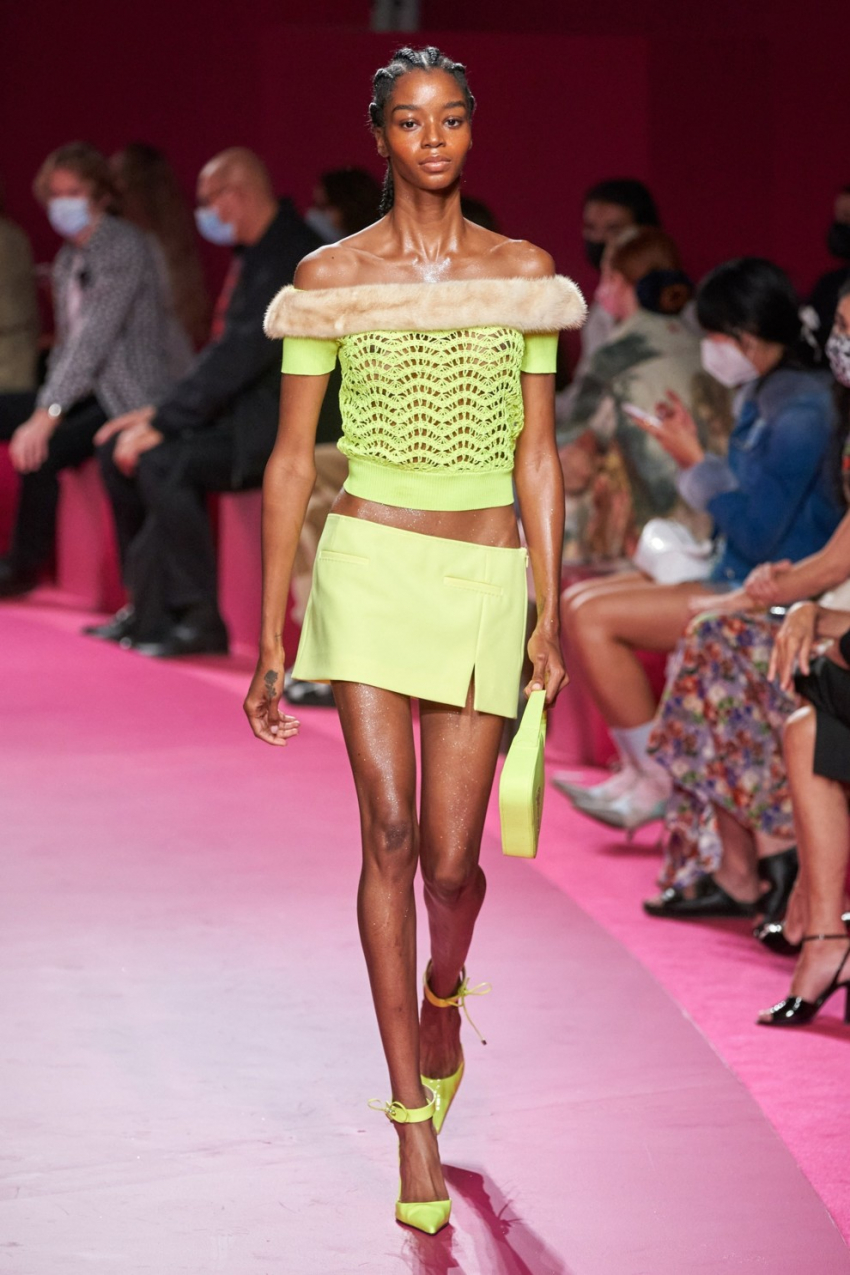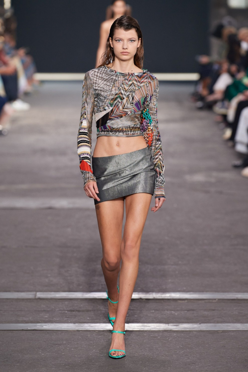 Versace весна-лето 2022Донателла Версаче выпустила на подиум моделей, которые щеголяли в мини, расшитых пайетками, оголяя свои загорелые, блестящие от масла и шиммера ноги. В коллекции Prada Миучча и Раф Симонс представили атласные мини со шлейфами-хвостами. В Blumarine Никола Броньяно показал микро-мини, которые восходят к 1960-м годам и напоминают те, что когда-то носили Твигги, Мэри Куант и моды. Но от своих предшественников юбки Blumarine отличаются длинной (они значительно короче) и типичной для начала 2000-х эстетикой — аппликациями в виде бабочек и яркими стразами. У Emilio Pucci на подиуме появились юбки-футляры, которые по размеру были чуть шире ремней. А на безумно соблазнительном показе Missoni новый креативный директор Альберто Калири практиковал подход «меньше значит больше» к юбкам, сочетая их с бикини и люрексом.