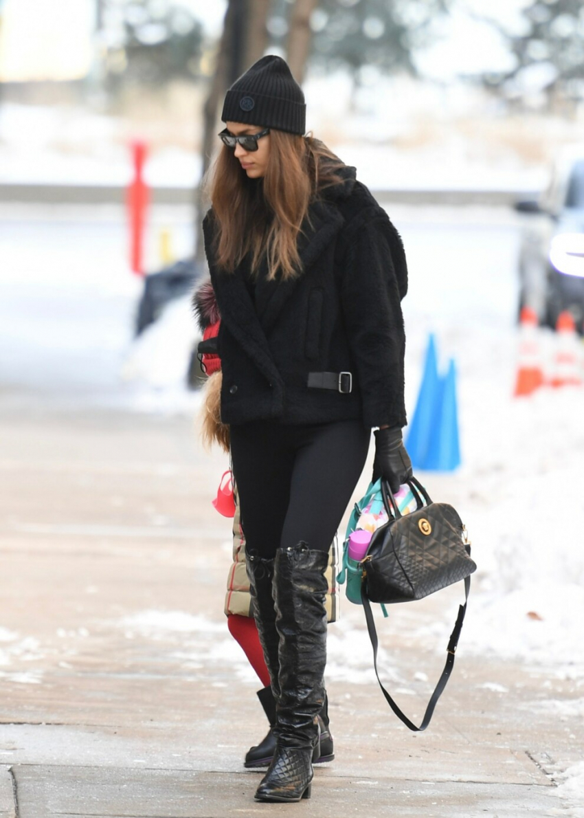 Хейли Бибер Леггинсы + ботфортыИрина ШейкИрина Шейк сделала ставку на черный total look, в который добавила высокие сапоги. Такую стилистическую формулу уже не раз опробывала Ким Кардашьян. В такой образ можно добавлять любые ботинки или ботильоны: со шнурками, как модели Witch и Dr. Martens, или армейские.