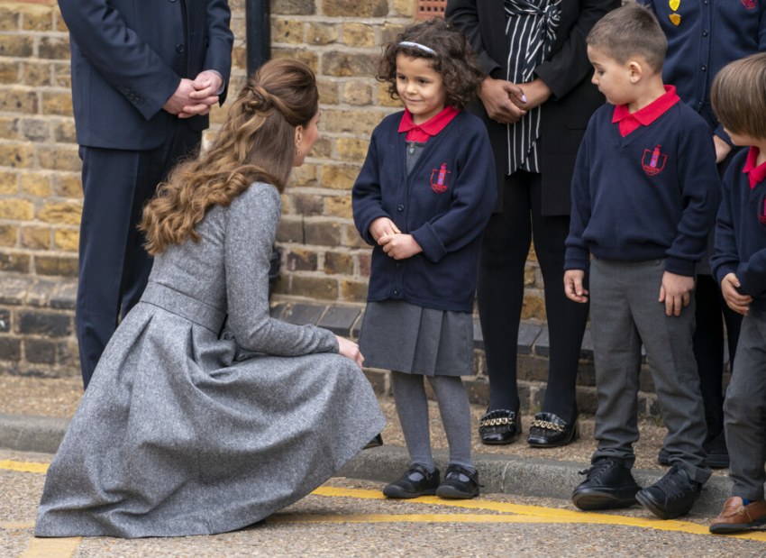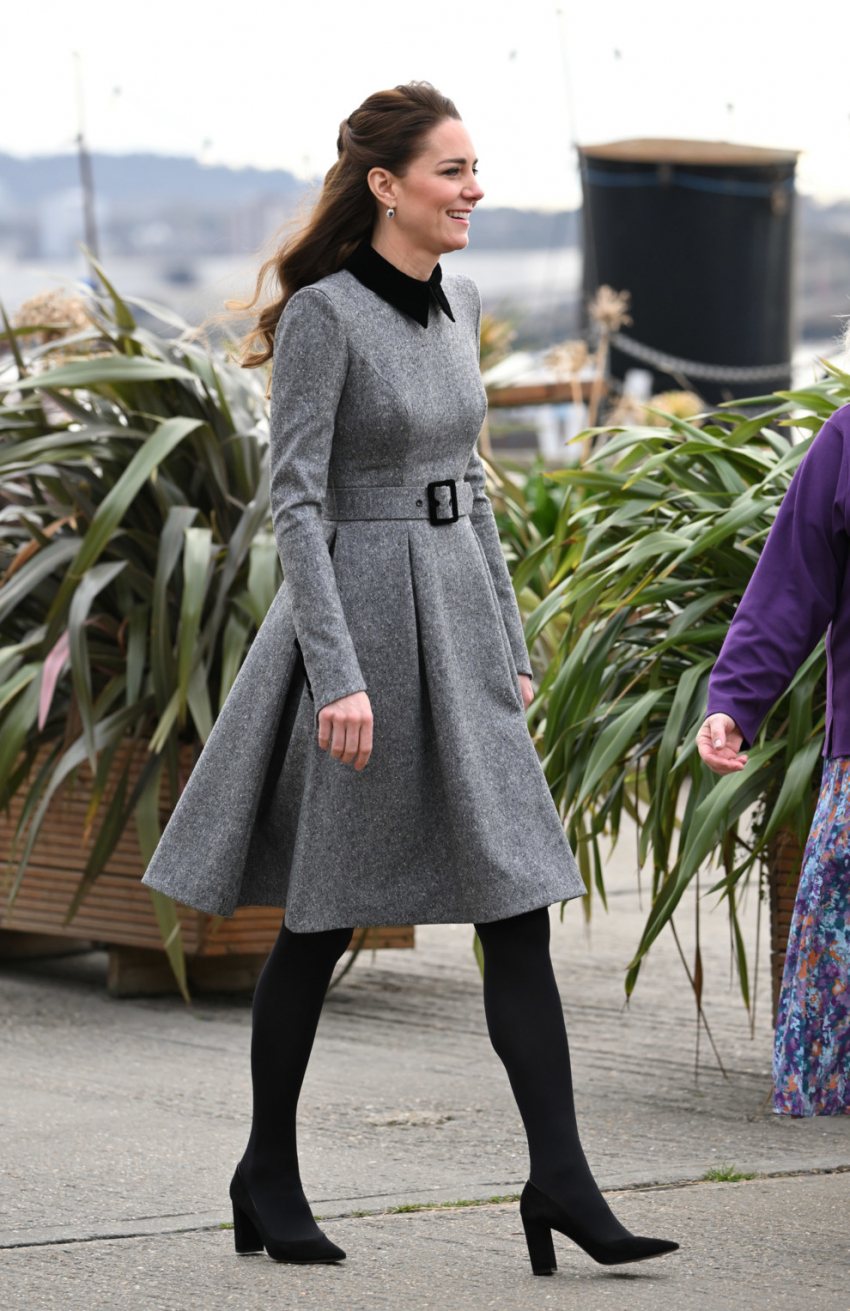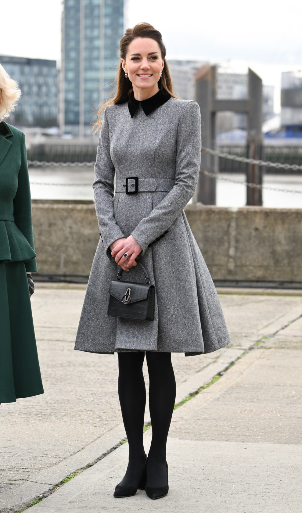 Герцогиня Кембриджская, поддерживающая устойчивую моду, уже выходила в свет в этом платье Catherine Walker в марте 2019 года. Тогда Миддлтон посещала мероприятие в The Founding Museum в Лондоне. На этот раз супруга принца Уильяма сопроводила платье туфлями Gianvitto Rossi, сумкой Mulberry, крупными серьгами и кольцом.