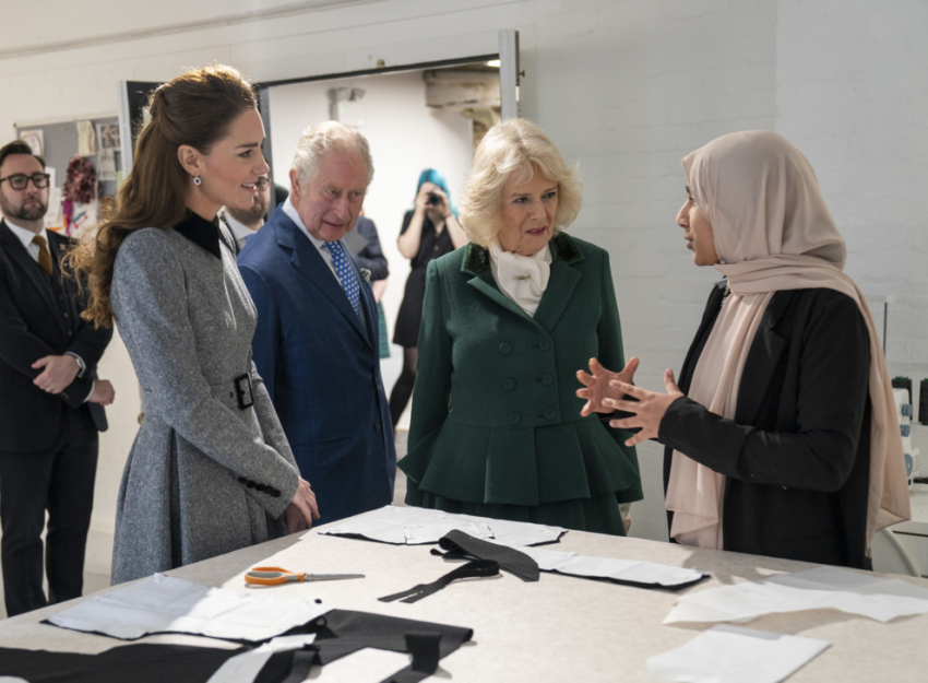 Члены британской королевской семьи, принц Уэльский, герцогиня Корнуоллская и герцогиня Кембриджская посетили учебную площадку по искусству и культуре на Trinity Buoy в Лондоне, где они встретились со студентами, изучающими традиционные отрасли, такие как текстиль, обработка камня и восковая лепка.
