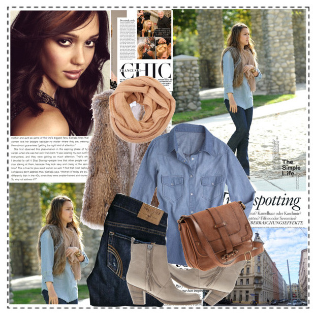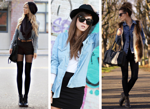 Модно сочетать несколько джинсовых вещей в одном образе, причем разных оттенков. Оденьте темные джинсы или юбку, светлую простую майку, а поверх нее — на половину застегнутую светлую рубашку из денима. Если на улице прохладно — дополните образ меховым жилетом.
