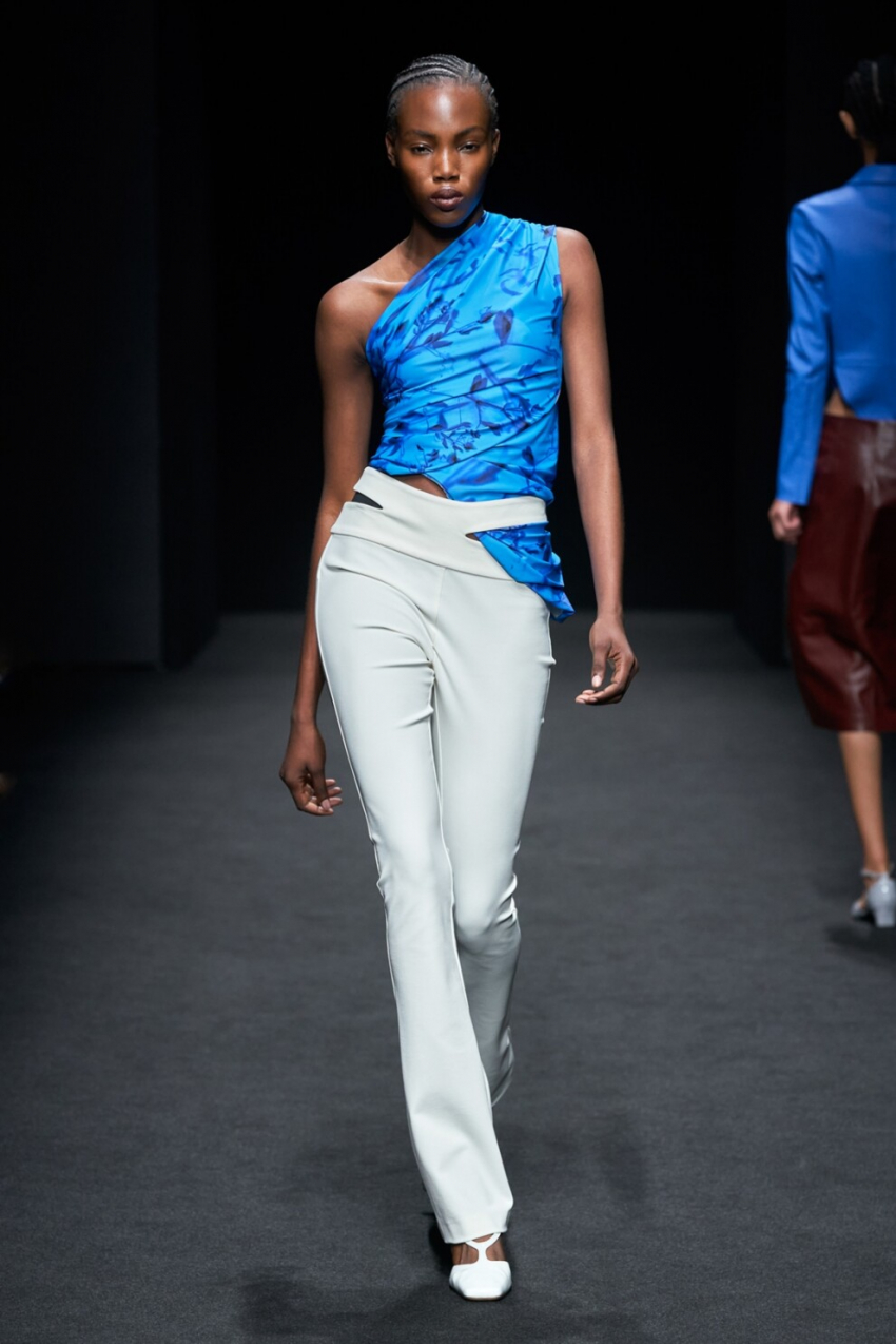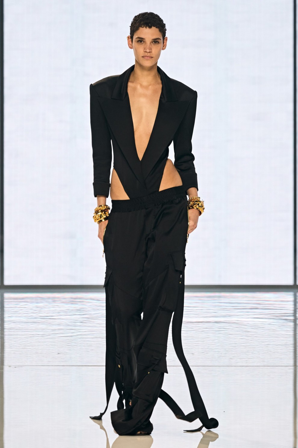 Если в прошлом сезоне бренды охотно декорировали брюки эффектными разрезами внизу изделия, то теперь на повестке дня брюки с соблазнительными вырезами на бедрах, в которые просто невозможно не влюбиться. Balmain показали трикотажные белые и черные пары с низкой посадкой, оголяющие одну часть бедра, Couregges представили брюки-карго с двумя симметричными вырезами, Versace украсили эффектные салатовые брюки bootcut небольшим вырезом и пряжкой с фирменной монограммой, а Drome сделали выбор в пользу минималистичных приталенных брюк.