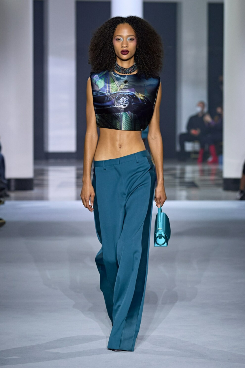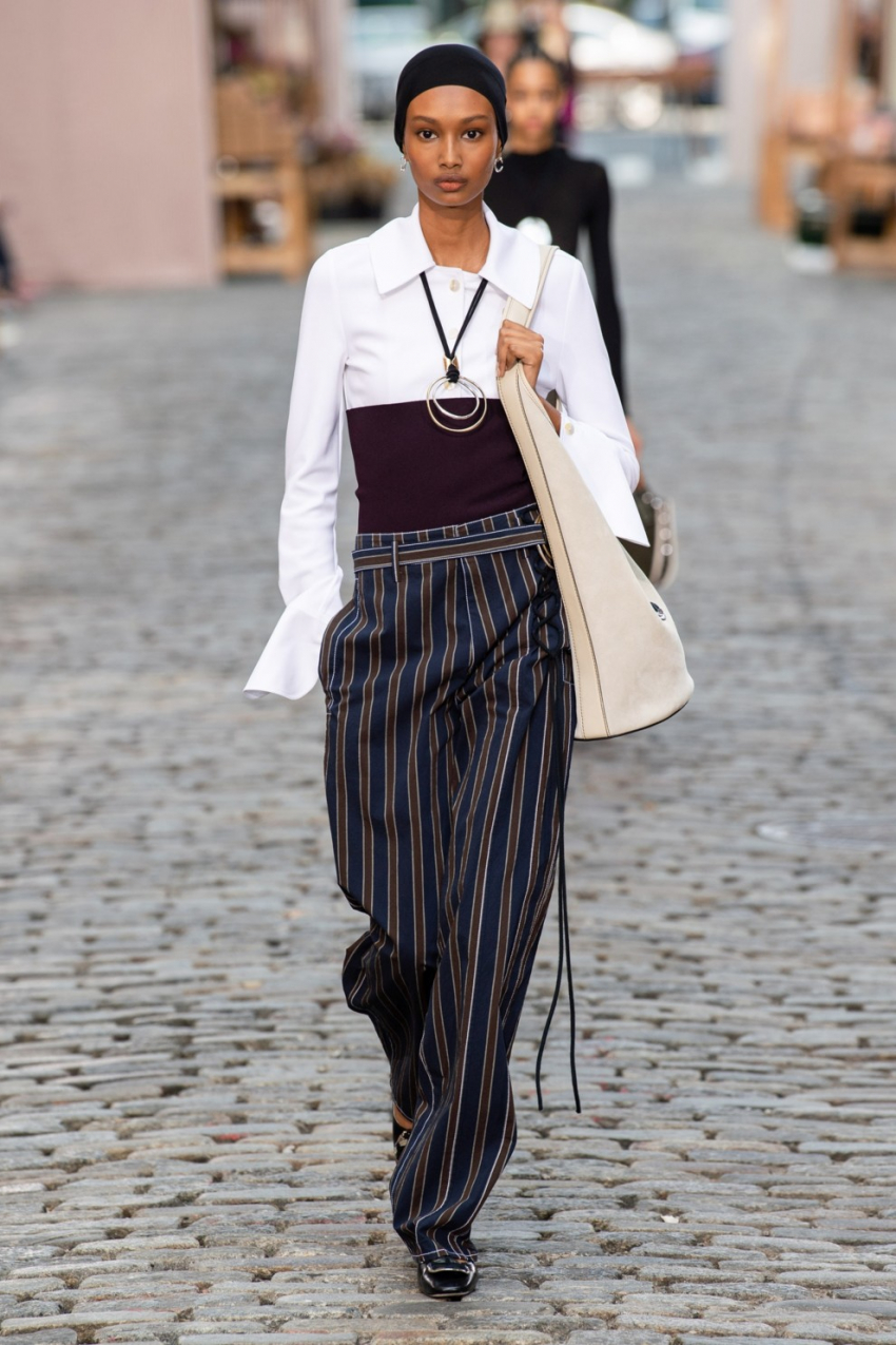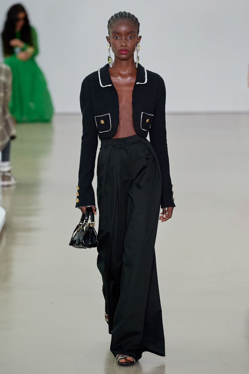 BalmainПомните костюмы в мелкую полоску, которые любили носить звезды в 1990-х годах? Этот тренд по-прежнему с нами, но теперь помимо тонких полос в коллекциях весна-лето 2022 появились брюки с широким принтом. Если Allesandra Rich все же решили придерживаться классического строгого варианта с мелкими полосами, то Schiaparelli выбрали брюки в полосатый принт, отсылающий к морскому узору. Тем временем, Tory Burch добавили третий оттенок в модные брюки с защипами, которые стильно будут смотреться в офисе с белой рубашкой.
