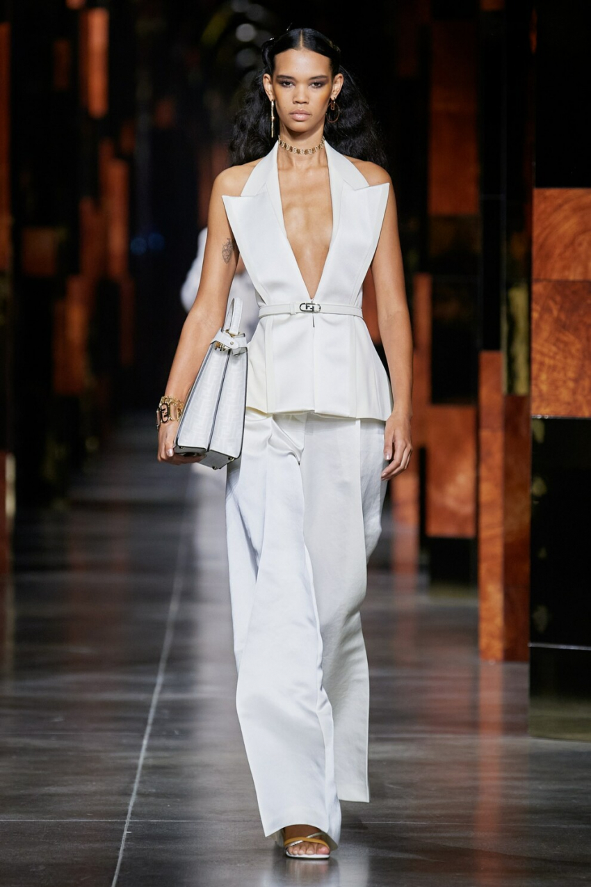 BalmainКак говорится, не одними нулевыми едины. В этом сезоне весна-лето 2022 дизайнеры воспели в своих коллекциях элегантные брюки-палаццо. Завышенная талия, широкие штанины от основания, расклешенные по всей длине - вот отличительные черты этих красивых брюк. В большинстве случаев брюки-палаццо бренды предлагают из легких и летящих материалов, а значит в них будет комфортно провести летнее время. Эти брюки отлично рифмуются с туфлями, по которым вы наверняка успели соскучиться. Fendi предлагают носить их с брючным жакетом на голое тело, Alexandre Vauthier сочетают с шелковым топом, Giambattista Valli комбинируют с твидовым жакетом, а Victoria Beckham предлагают заправлять в них приталенный блейзер.