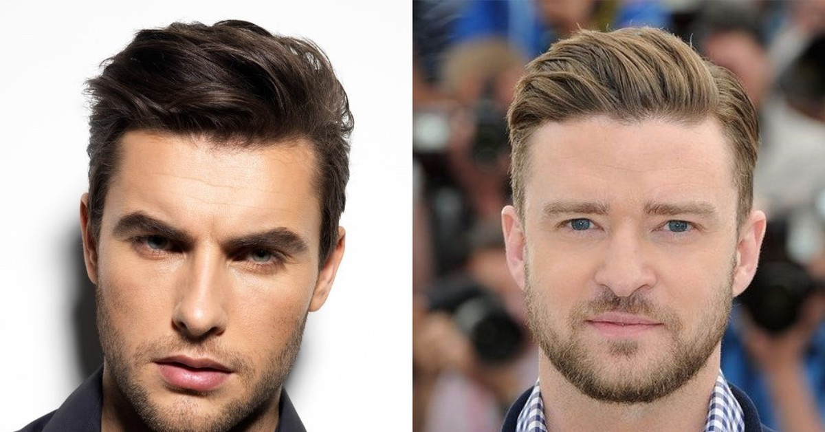 Для лица треугольной или ромбовидной формы также потребуется косая челка, укороченные виски и не такой объемный верх. Если голова имеет характерную квадратную форму, то такая прическа поможет придать очертания овала, если мужчина обладает густыми волосами.