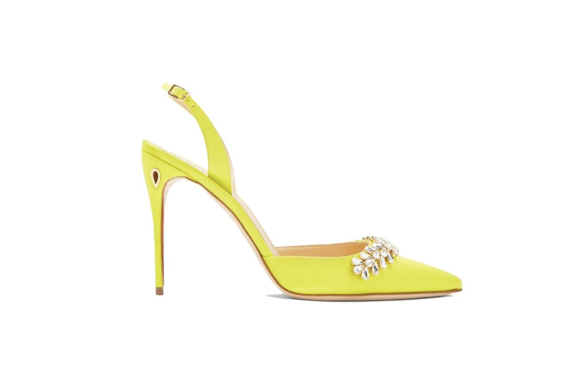 VersaceЭффектные туфли без каблука, такие как элегантные лодочки Christian Dior или объемные шлепанцы Roger Vivier, декорированные изумрудным атласом, идеально подойдут для дневных торжеств. Любительницам высоких каблуков предлагаем добавит в свой вишлист туфли и босоножки c фигурным каблуком Amina Muaddi. А модницам, которые не хотят балансировать на головокружительной шпильке, стоит обратить внимание на нарядную обувь с маленьким каблуком: туфли-слингбэки Gucci, украшенные кристаллами или ярко-зеленые босоножки на шнуровке The Attico. Vogue.ua собрал самую нарядную обувь этого сезона для новогодних вечеринок.