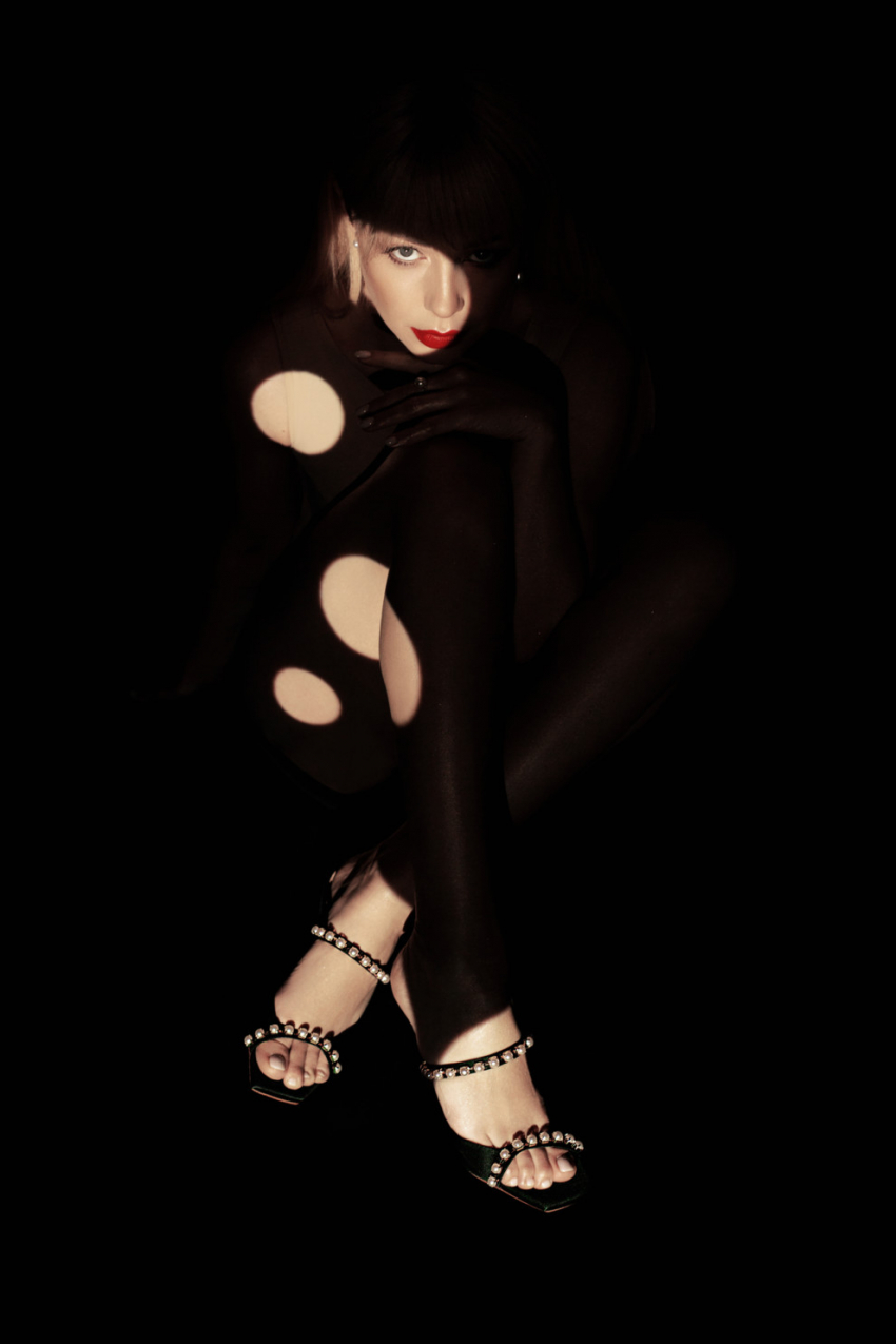 Новая коллекция стала логическим продолжением предыдущих коллабораций артистки с этим брендом. Любимые многими модели – мюли и босоножки с квадратным носком – в этот раз "переоделись" в торжественный черный атлас и засверкали жемчужным блеском. Так, на одной из моделей мюлей появился эффектный ремешок-анклет из жемчуга, регулируемый под любую лодыжку. На другой модели жемчужинами украшены каблуки. В босоножках декорирована задняя часть, а под каблуком эффектно сияет крупная жемчужина.