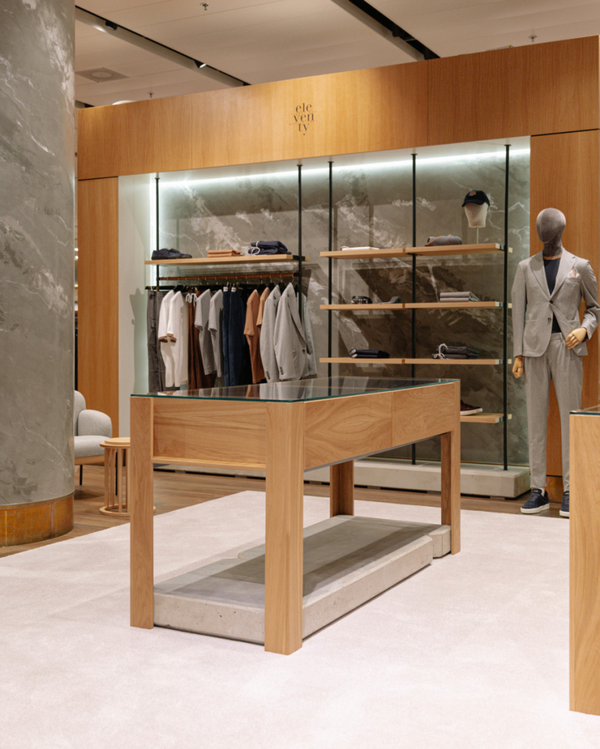 Shop-in-shop EleventyНе забываем мы и о мужской классике, которая представлена прежде всего итальянскими и французскими брендами. Советую обратить внимание на такие имена, как Lemaire, Cortigiani и Tagliatore. В их коллекциях можно найти и безупречную верхнюю одежду, и идеально скроенные костюмы, и более повседневный кашемир, и широкий выбор аксессуаров – от галстуков до шелковых платков.