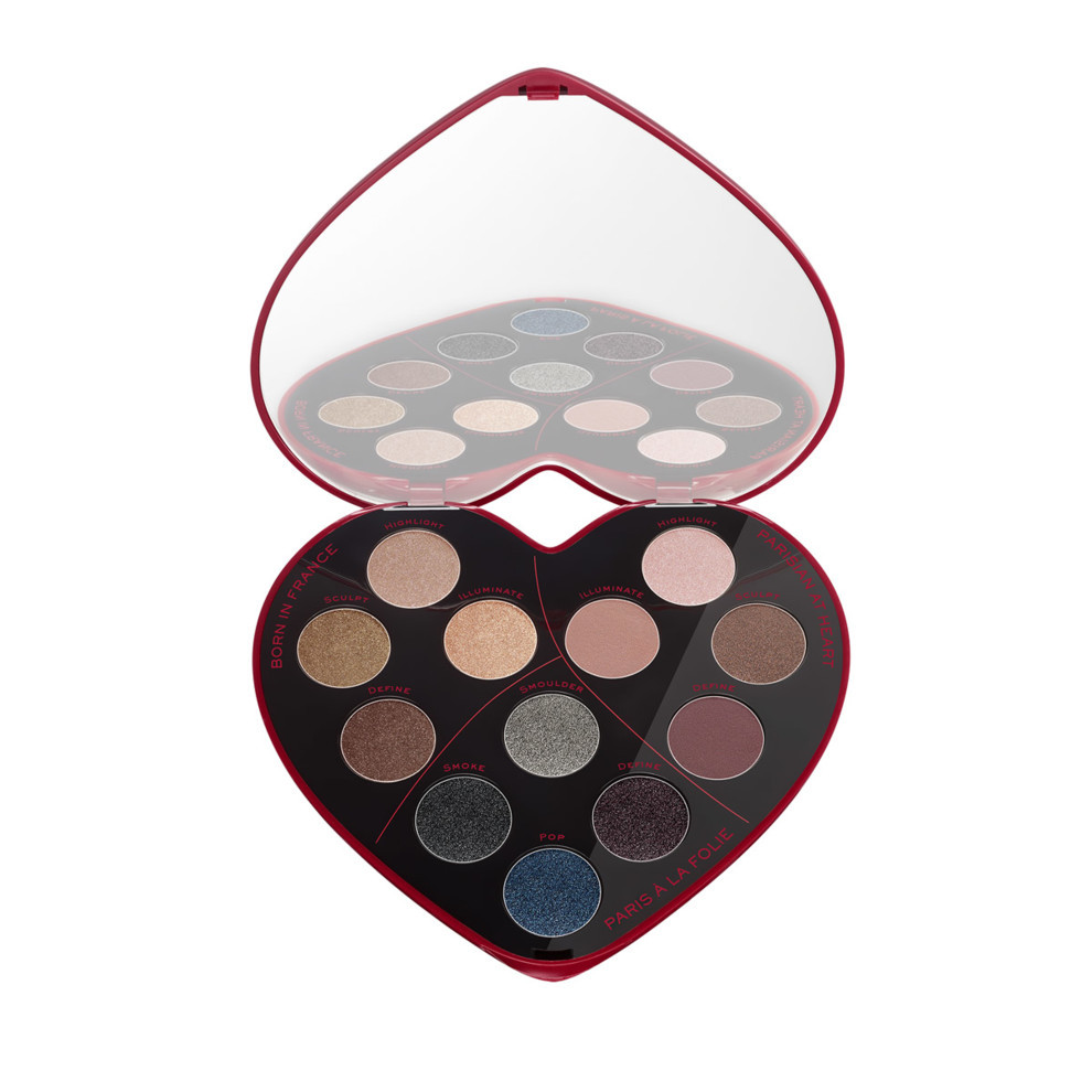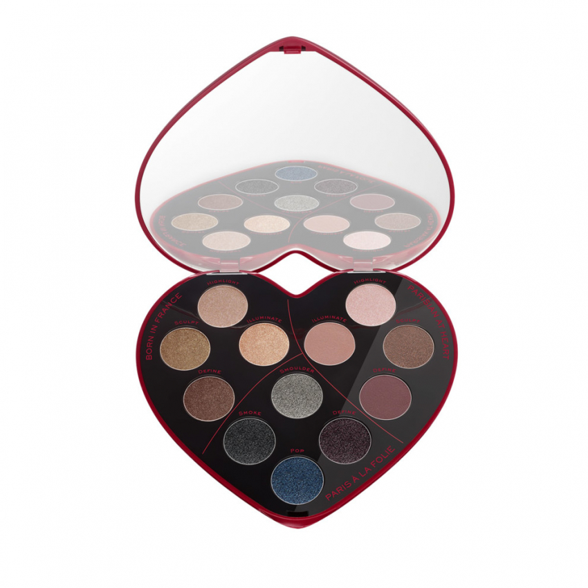Изюминка коллекции – палитра теней для век в форме красного сердца, состоящая из 12 оттенков, разделенных на три подгруппы из 4 гармонирующих между собой цветов.