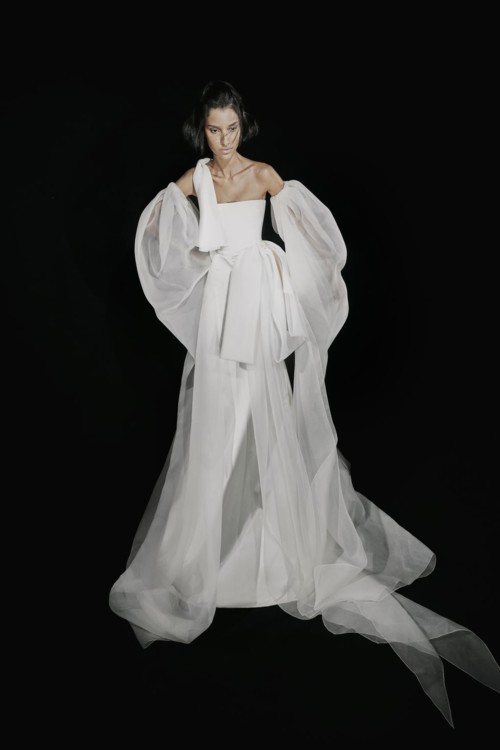 В дебютную коллекцию Vera Wang Haute вошло всего 10 образов, каждый из которых воплощает в себе опыт, видение и креативность, которые Вера приобрела за более чем тридцатилетнюю карьеру в свадебной индустрии. Таким образом, коллекция Haute представляет собой исследование главных приемов, которые вывели Вонг в статус королевы свадебной моды. Каждое платье, состоящее из различных силуэтов, объемов, размеров и пропорций, является воплощением традиций. От романтизма объемного струящегося кружева до яркой архитектурной конструкции и роскошного мини-платья с черными рукавами-баллонами - Haute представляет собой коллекцию эффектных изделий высокого дизайна, сшитых по индивидуальному заказу в собственных мастерских дизайнера. Все образы из коллекции смотрите в нашей галерее.