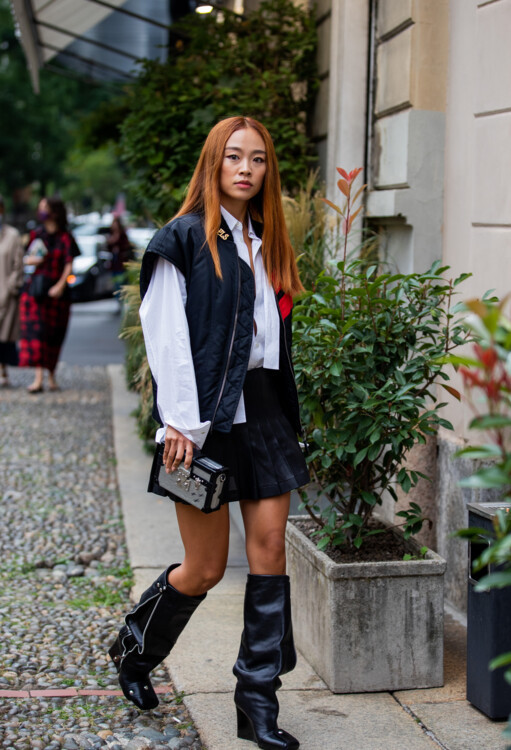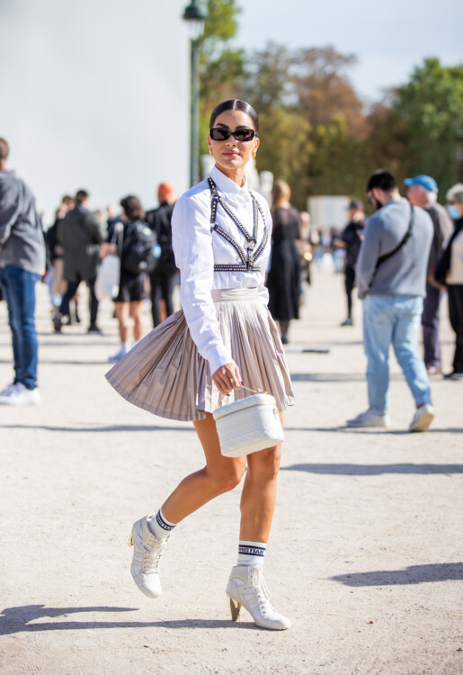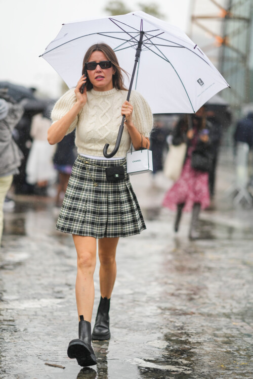 В этом сезоне осень-зима 2021/2022 длина мини захватила модные подиумы, деля пальму первенства с эстетикой стиля преппи. Дизайнеры предложили всевозможные вариации коротких школьных юбок в складку - от дерзкой кожи до элегантной и благородной клетки. Streetstyle-звезды охотно подхватили модный тренд и принялись демонстрировать образы, вдохновленные школьным стилем. Главным элементом их образов стали плиссированные мини-юбки, которые девушки сочетали с грубыми ботинками и жакетами в тон, вязаными свитерами крупной вязки и высокими сапогами, объемными рубашками и спортивными бомберами. Модницы дополняли свои образы вязаными жилетками, блузами с отложными воротниками, белыми носками трикотажными гольфами. Vogue.ua собрал модные образы инфлюенсеров и показал как стильно носить мини-юбки со складками осенью.