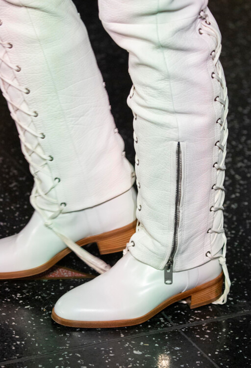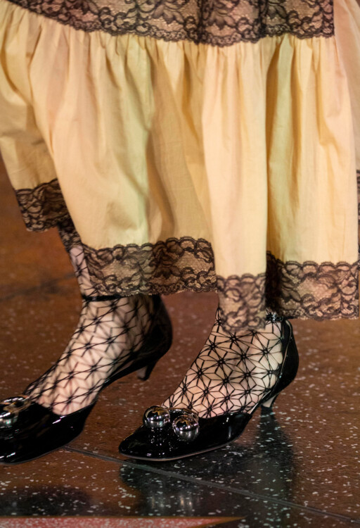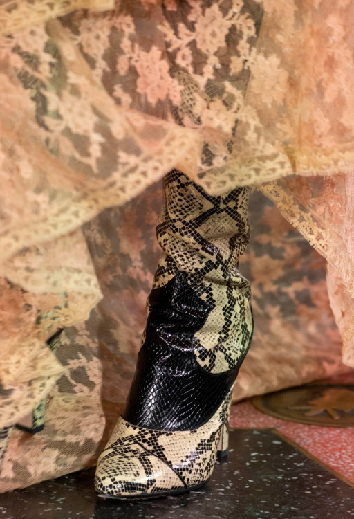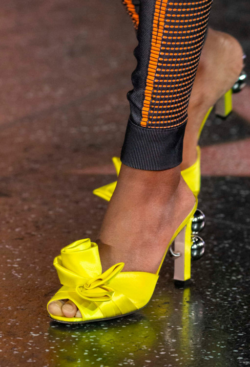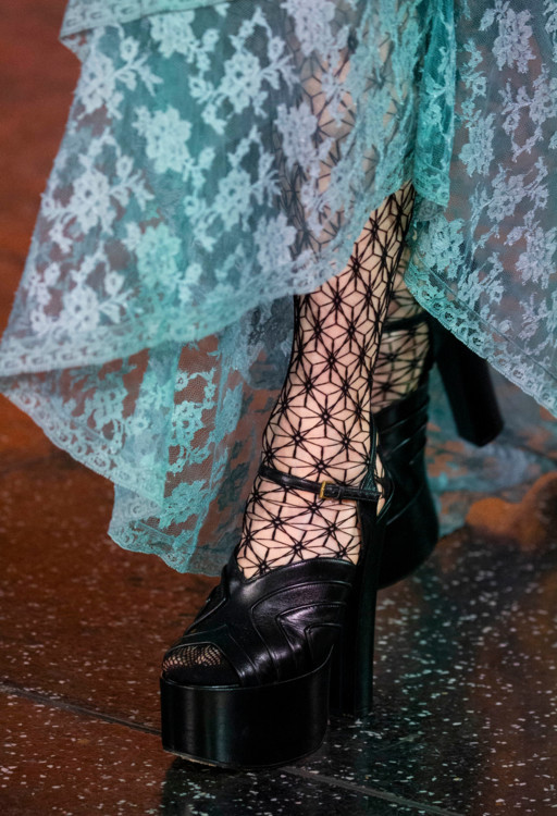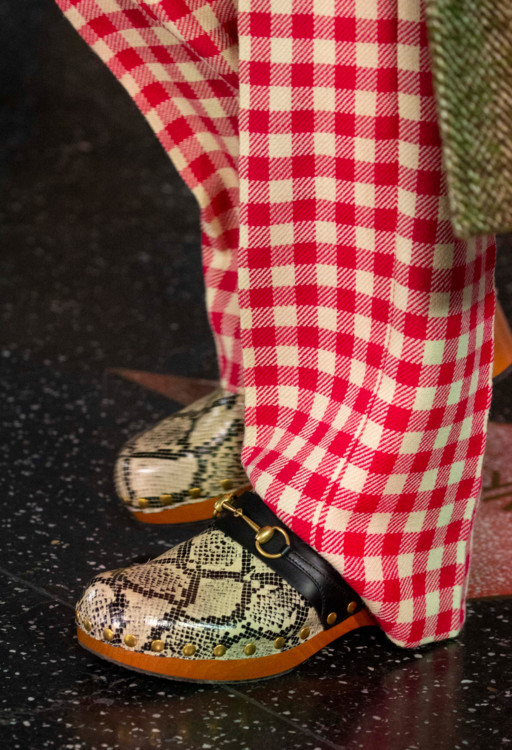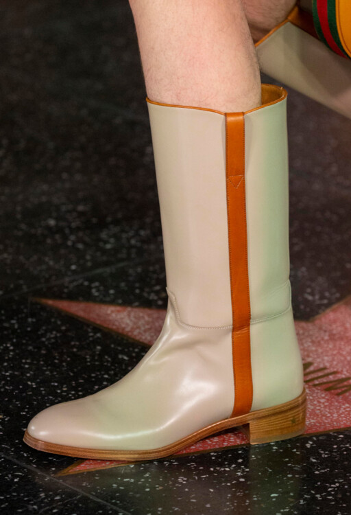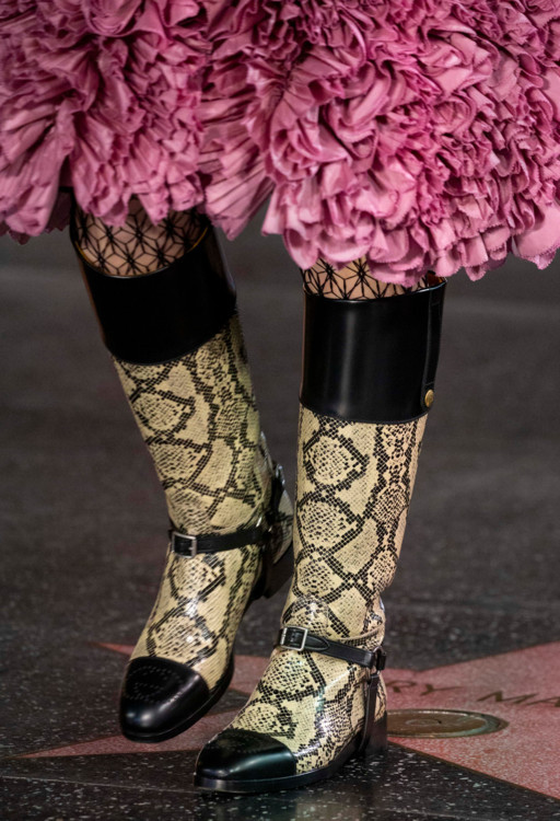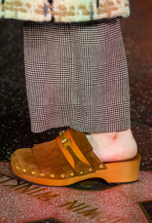 Новая коллекция Gucci точно понравится поклонникам нескучной обуви – от мюлей на высоких каблуках с бутонами и замшевых клогов до сапог со шнуровкой сзади и спортивных кроссовок.