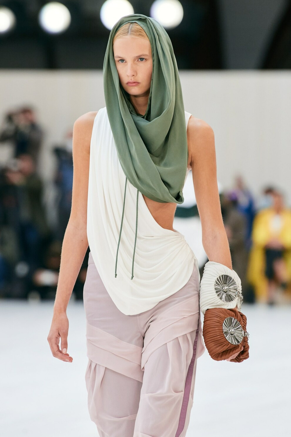 Loewe, весна-лето 2022Кожаные мини-аксессуары, которые следует носить на запястье, были замечены у Loewe и Fendi. Джонатан Андерсон уже конструировал такие сумки - впервые они появились в коллекции бренда еще в осенне-зимнем сезоне. Следующей же весной Loewe предлагают носить сразу несколько сумок-браслетов, которые умело подчеркнут нежный образ в пастельных оттенках. Fendi же делают ставку на white total look. Белый цвет - один из главных трендов следующего сезона, поэтому всевозможные аксессуары, особенно необычные сумки-браслеты, будут в особом почете у модниц.