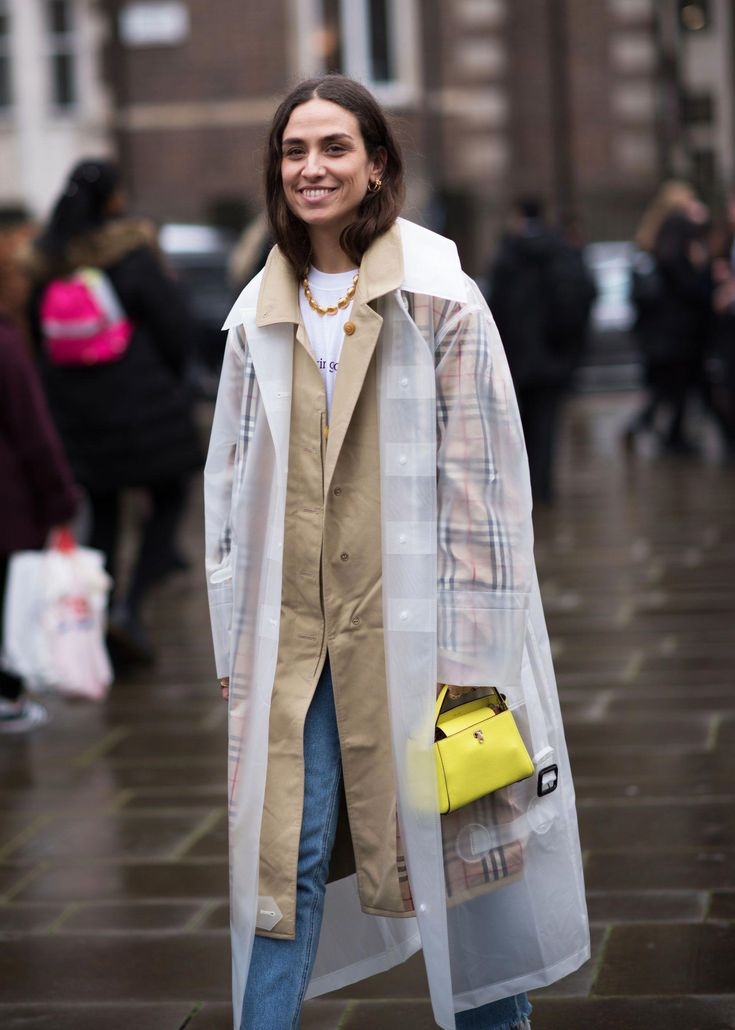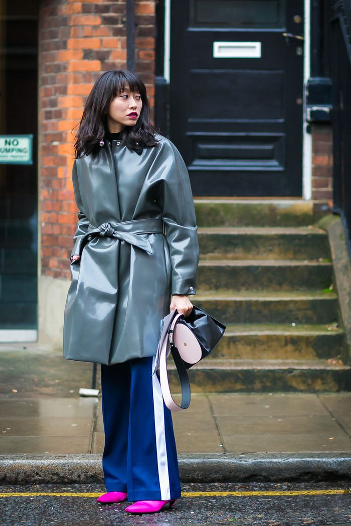 Любительницам смелых решений наверняка должна понравиться одна интересная тенденция – виниловые плащи. Причем они могут быть в цветном или прозрачном исполнении. Подобный необычный плащ дополнит любой женский образ в дождливую или ветреную погоду.