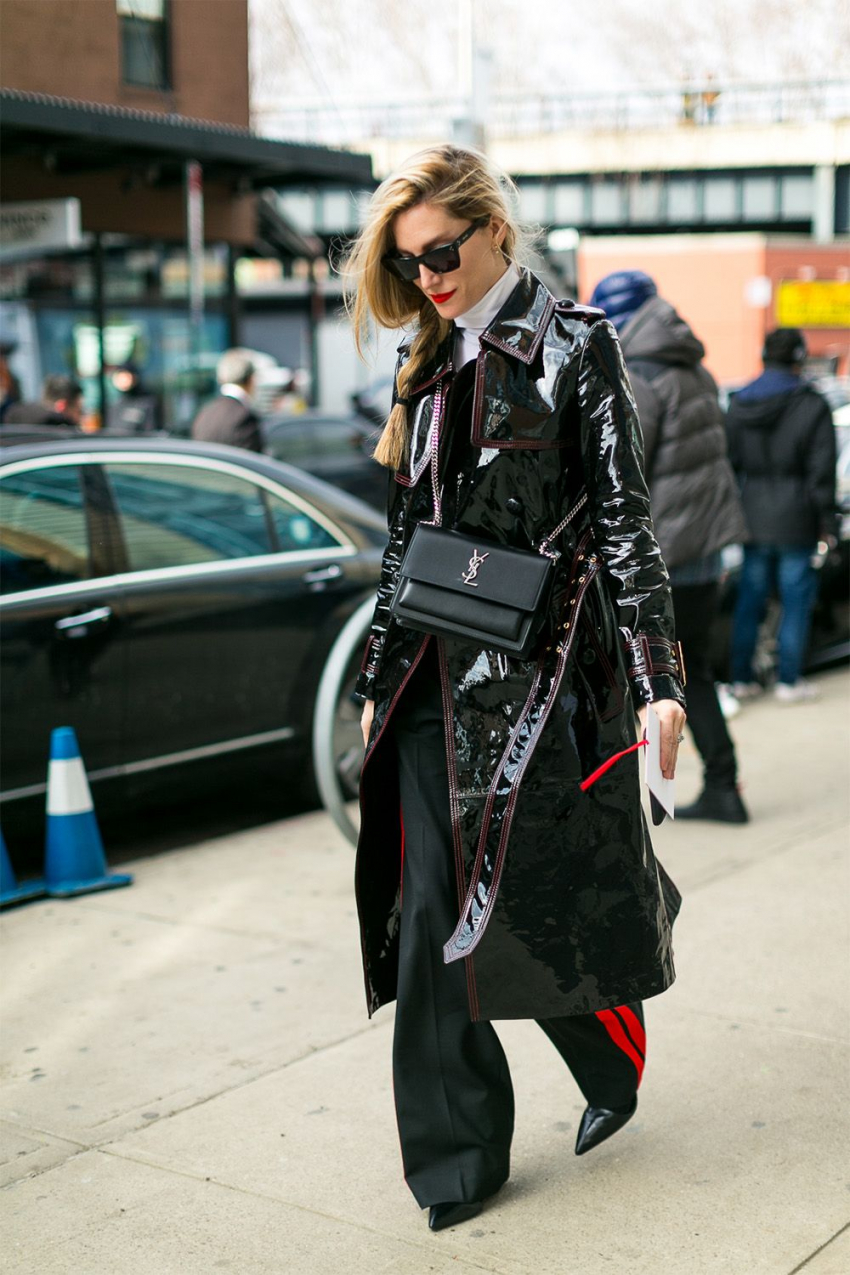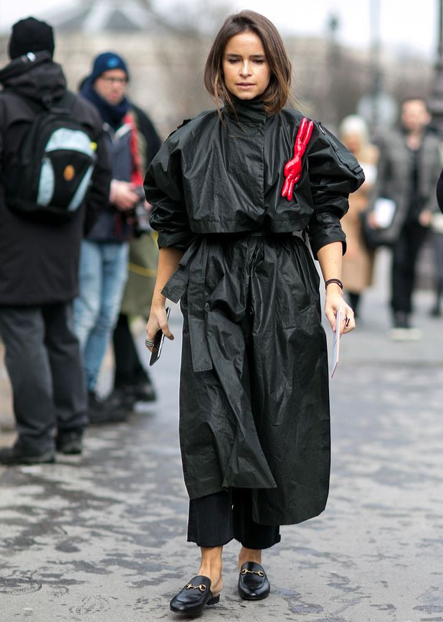 Трендовой моделью нового сезона станет длинный хэвлок, выполненный в классическом черном цвете. Большой популярностью будут пользоваться как плащевые ткани, так и натуральная или лаковая кожа. Если вы отдаете предпочтение тотал-лукам черного цвета, такой плащ наверняка придется вам по вкусу.