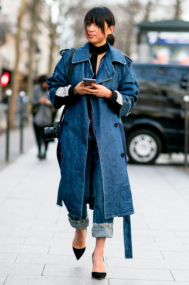 Этот популярный материал также используется для создания оригинальных моделей плащей, которые будут актуальными следующей весной и летом. Плащ из денима в свободном крое может быть как укороченным, так и длинным.