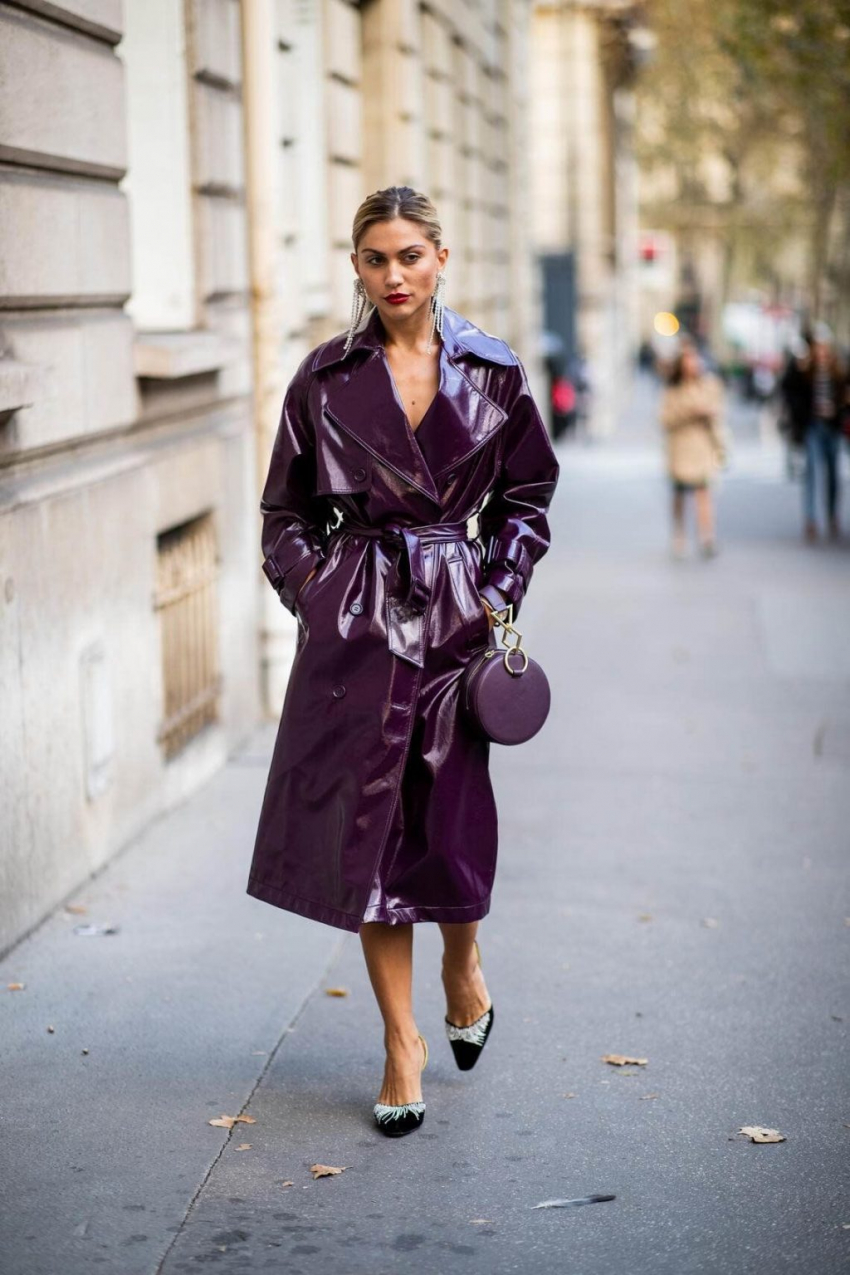 Для уверенных в себе модниц, которые не боятся показать окружающим свою экстравагантность, известные дома моды в 2022 году предлагают яркие лакированные тренчи. Причем приветствуются самые яркие цвета и оттенки. Как видно на фото, очень интересно и модно смотрится женский плащ насыщенного цвета фуксии.