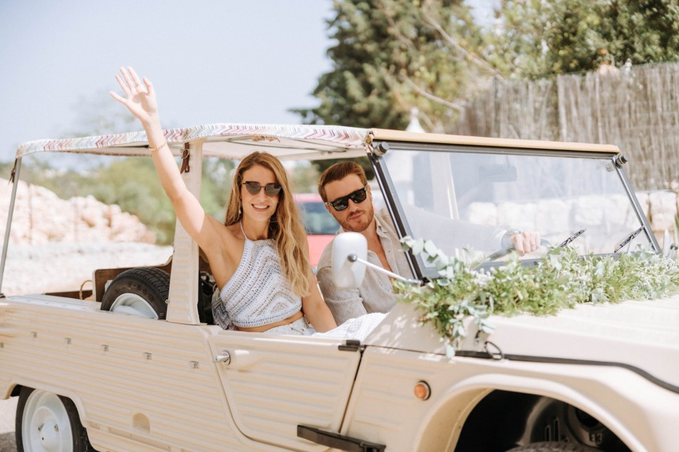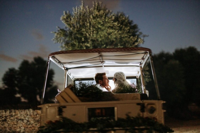Сильвия и Джакомо за рулем Citroën MéhariНо давайте поговорим о бренде Missoni — Сильвия, как и Джакомо, работает в модном Доме, который является одним из самых важных на рынке made in Italy. Поэтому и образы, выбранные супругами, заслуживают особого внимания. Так, выбор жениха пал на миланское ателье Sartoria Lazzarin, которое пошило костюмы для свадебной церемонии и ужина из уникальных тканей Missoni. Любопытный факт: из этой же ткани были созданы жилеты свидетелей, чтобы подчеркнуть глубокую связь с Джакомо.