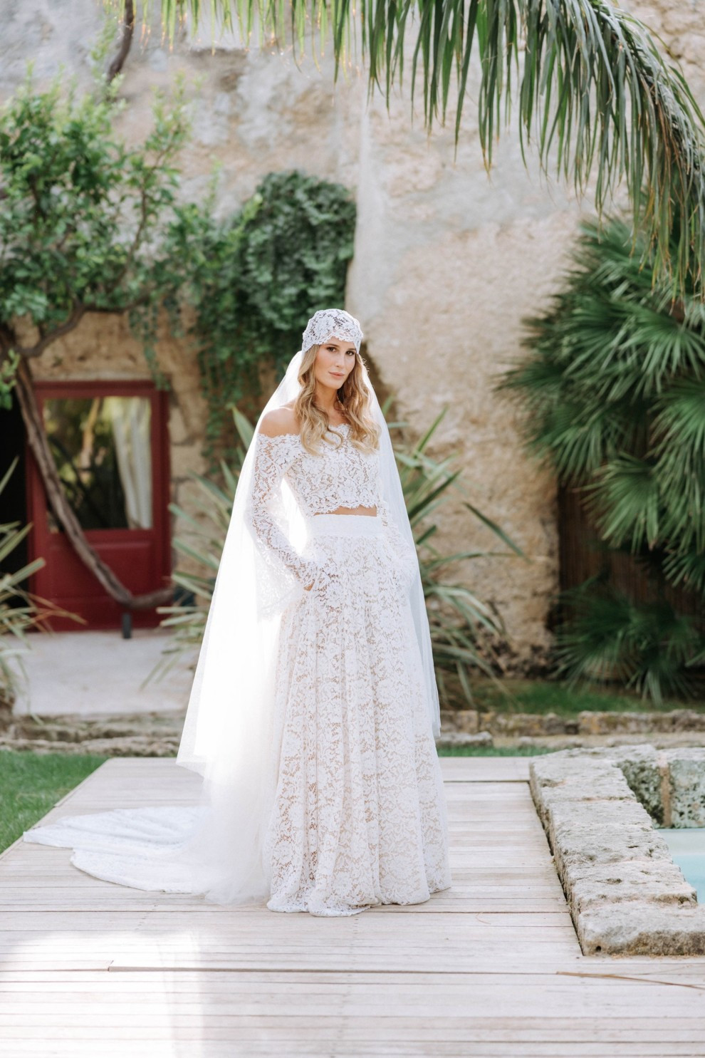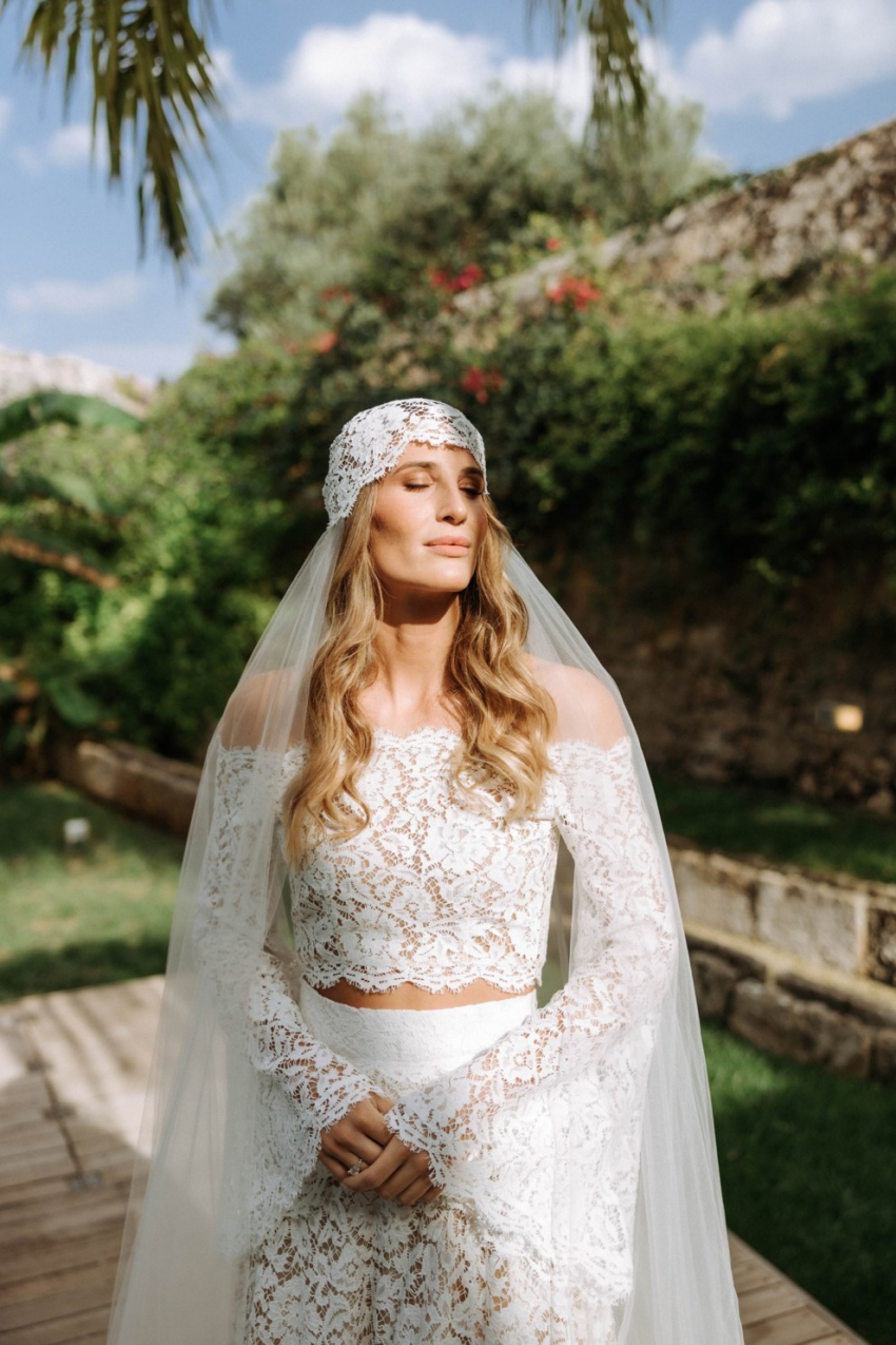 Свадьба Сильвия Торасса и Джакомо МиссониОднако эта локация заиграла новыми красками с появлением невесты. Выход Сильвии сопровождала радуга и две тысячи белоснежных бумажных бабочек, которые гости подбрасывали вверх вместо риса. Еще один приятный сюрприз — неожиданное выступление певца Аль Бано. У выхода из церкви он исполнил захватывающая интерпретация легендарной песни Felicità и Ave Maria Шарля Франсуа Гуно. Но это было еще не все. Несмотря на масштабность мероприятия, на празднике царила атмосфера семейного теплого ужина. Так, например, почтив традицию создания свадебных венков, Сильвия сплела украшение на голову из стручков перца чили.