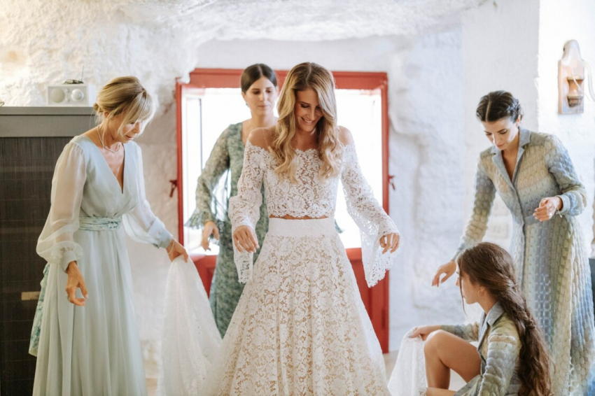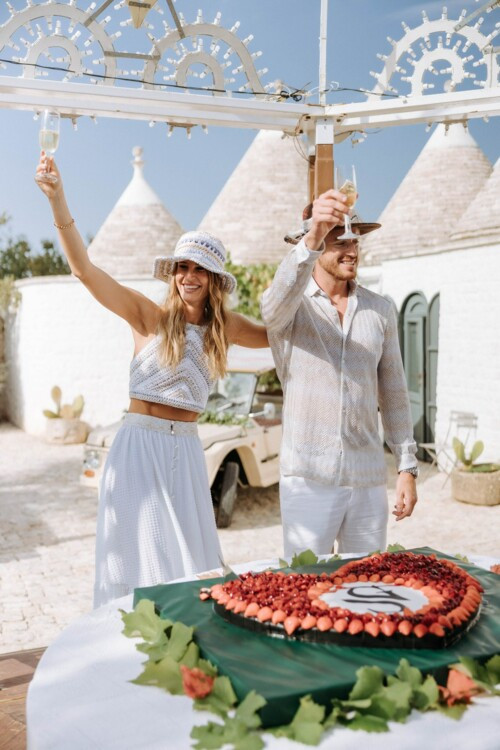 Что является основой для свадьбы? Конечно, любовь. И, ради всего святого, почти во всех случаях это так и есть. Однако есть молодожены, которые любят друг друга больше, чем другие, или, по крайней мере, так кажется. Одна из таких пар — Сильвия Торасса и Джакомо Миссони. И пусть не существует прибора, измеряющего силу чувств, их можно назвать по-настоящему родственными душами. Эти двое знают друг друга с детства, так как их семьи дружат, но настоящая искра между ними пробежала лишь спустя года, когда они повзрослели. Предложение руки и сердца было сделано в Апулии — там впоследствии состоялась и сама свадьба. Торжество несколько раз откладывали, но 18 сентября 2021 года паре наконец удалось вступить в официальный союз.