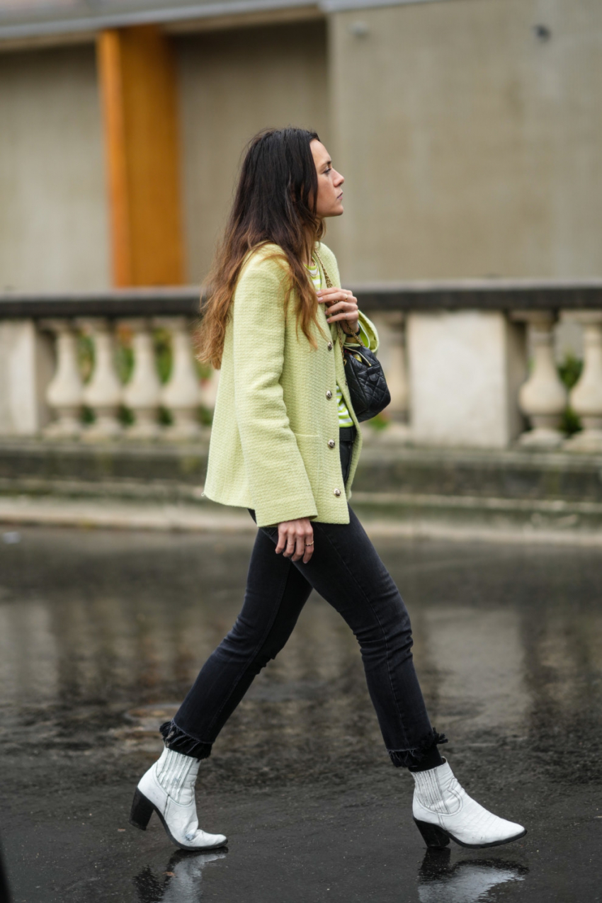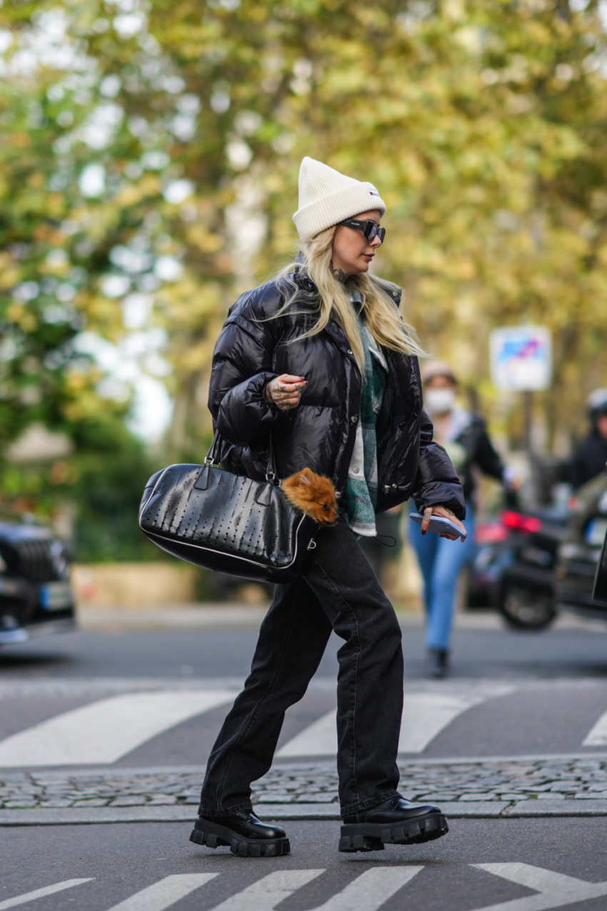 Предпочтение в сезоне осень-зима 2021/2022 стоит отдать черным прямым джинсам в винтажной расцветке. Подумайте об оттенках, которые приобретает ваша любимая пара после слишком частой стирки. С соответствующим силуэтом деним такого цвета будет выглядеть стильно и даже элегантно, и подойдет для путешествий или выходных с друзьями.