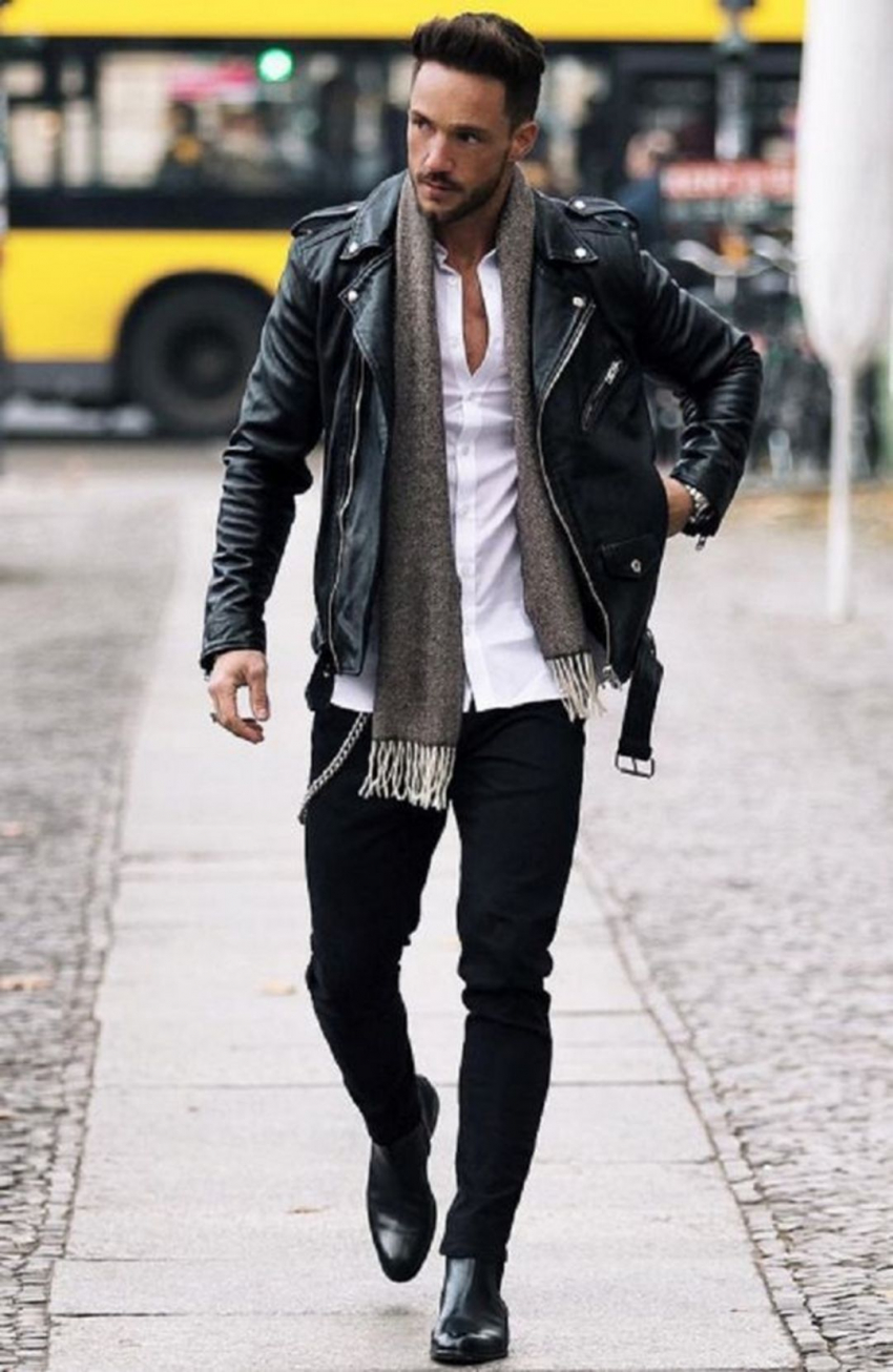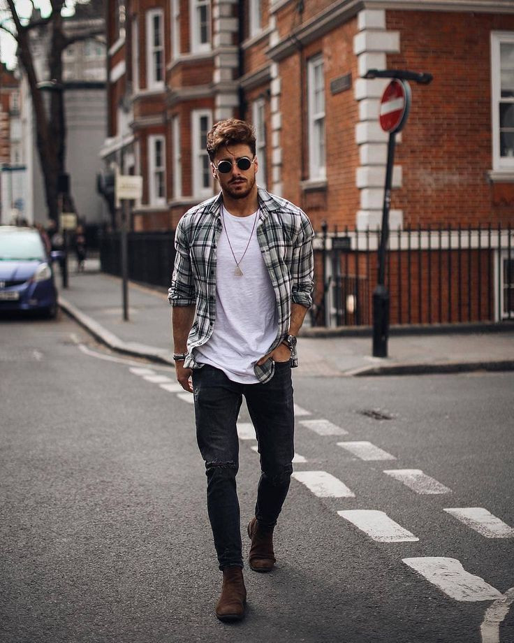 Рубашка + косуха = беспроигрышный вариант. Особенно хорошо такой лук будет смотреться на мужчинах статного типажа. Можно добавить белоснежные кроссовки, немного милитари и побольше металла. Можно достать с полок рваные джинсы. Для стильных вечеринок – самое то!