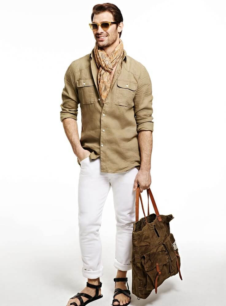 Набирает обороты, отлично подходит мужчинам цвет хаки, военный принт и побольше карманов, тогда «военка» станет украшением гардероба. Кстати, ее можно отлично сочетать с вещами в стиле сафари. Военная классика – штаны, заправленные в высокие ботинки и обтягивающая рубашка с коротким рукавом. Добавить металлические украшения и солнечные очки, и любой мужчина будет привлекать к себе массу женских взглядов. Подходит для повседневного стиля, путешествий и встречи с друзьями.