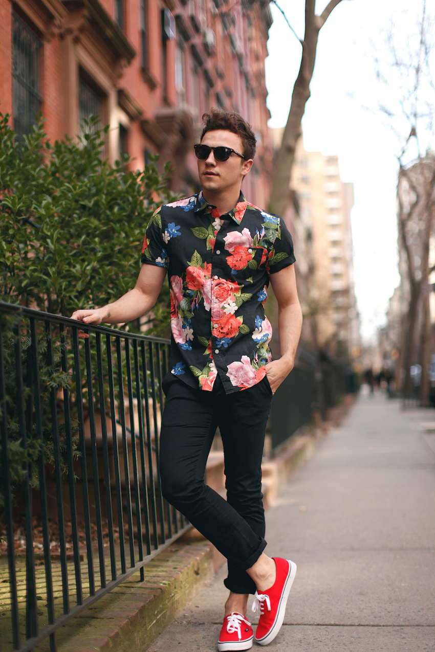 Если выбираете яркий цветочный орнамент для мужского образа, главное – не переборщить. Одной, максимум двух вещей хватит для создания оригинального стиля.