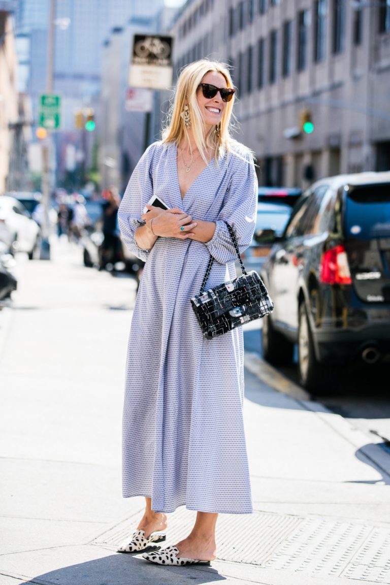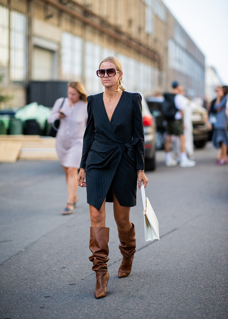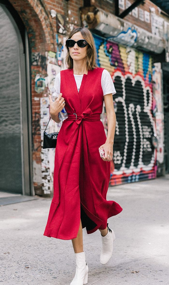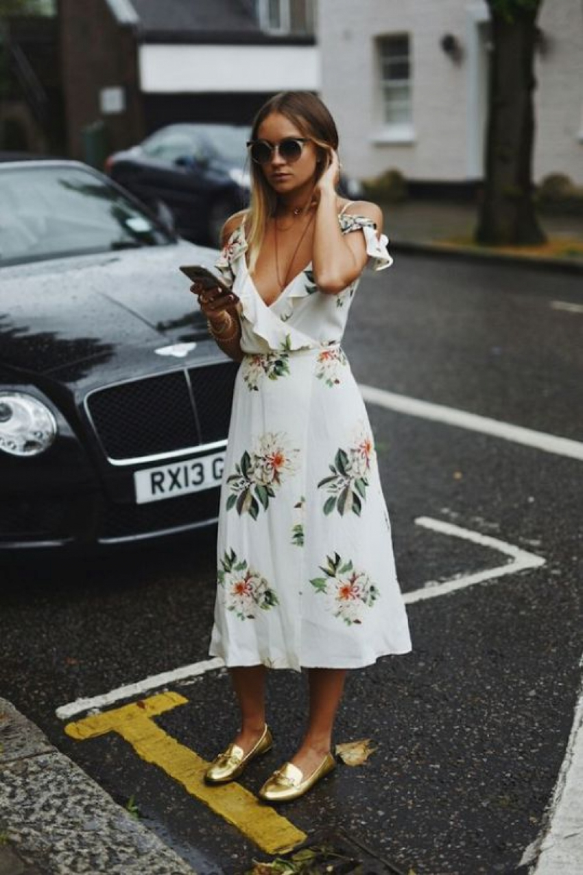 Для работы в офисе и деловых мероприятий лучше подобрать кожаное платье и дополнить его элегантными лодочками и классическим пальто, подходящим по цвету. А для повседневных образов идеально подойдет платье из струящихся тканей с романтичными оборками. Оно отлично будет смотреться с кроссовками или белыми кедами и курткой-косухой.