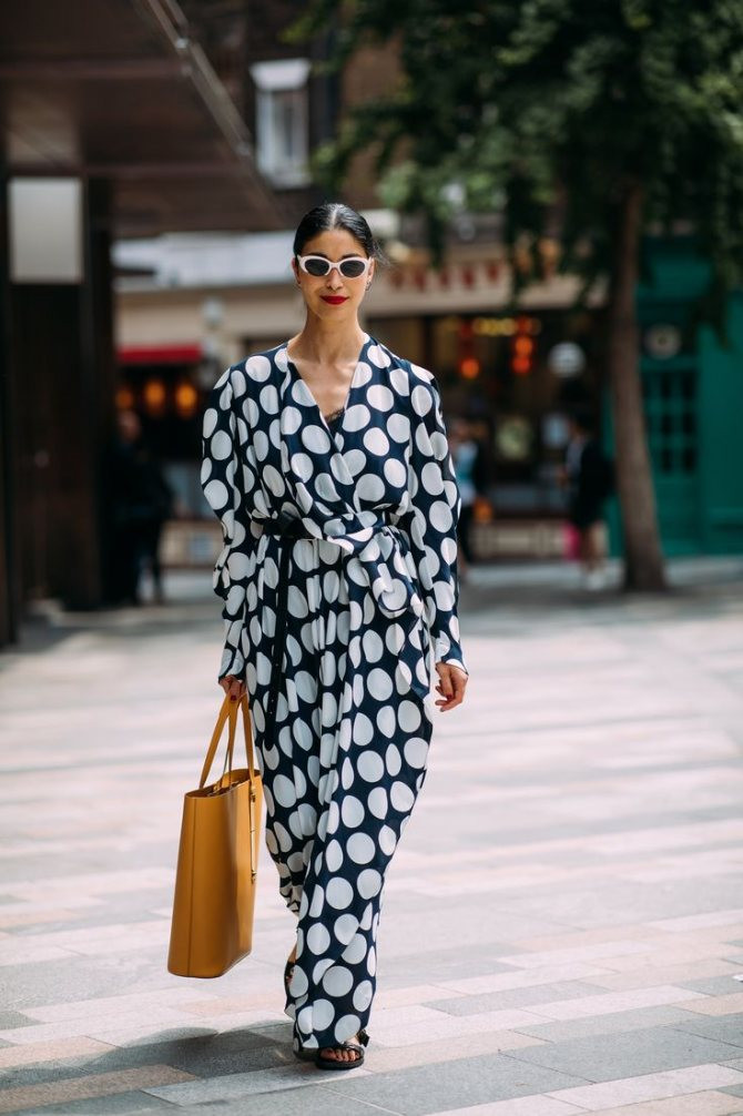 Горох – один из трендовых принтов не один модный сезон подряд. Выбрав для себя женственное платье, украшенное таким принтом, можно создавать повседневные, деловые и вечерние луки. В данном случае все зависит исключительно от аксессуаров, которые были подобраны к платью. Наиболее актуальными в новом сезоне будут платья на запах, выполненные из шифона, и полупрозрачные модели.