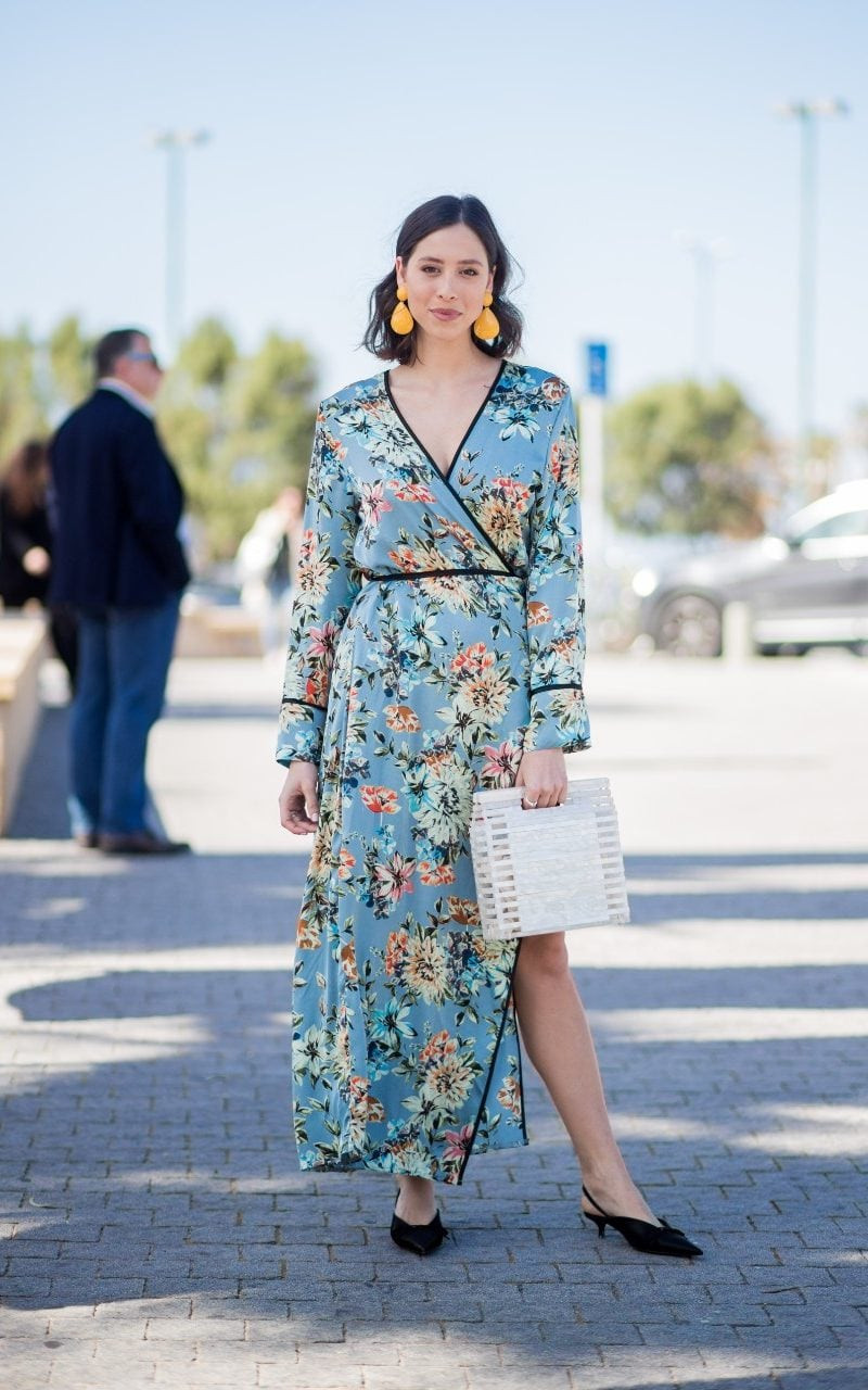 Очень важно дополнить платье с запахом подходящими аксессуарами, придавая образу дополненный вид за счет стильной обуви на высоких каблуках, клатча или небольшой сумки на тонком ремешке или на цепочке, красивой бижутерии.