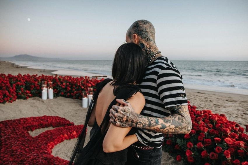 В минувшие выходные Кортни Кардашьян объявила о помолвке со своим возлюбленным Трэвисом Баркером, барабанщиком группы Blink-182. Звезда поделилась романтическим кадром, сделанным на берегу моря в Монтесито. Снимок трогательно подписан: "Навсегда". Сейчас же Кортни приоткрыла занавес этого события и поделилась новыми кадрами с места помолвки.