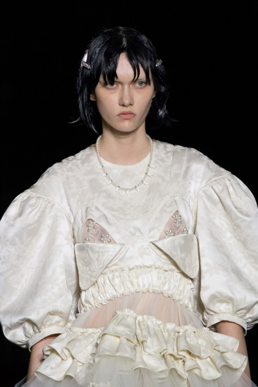 Simone RochaНа жемчужных колье и серьгах, представленных Simone Rocha, были подвешены фарфоровые молочные зубки - экстравагантные украшения для самых смелых модниц.