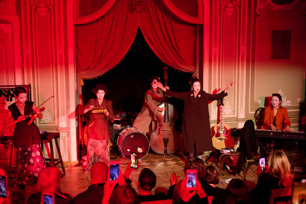 7-го октября в Киевской Мастерской Театрального Искусства “Сузiр’я” прошла презентация новой коллекции бренда Lake Studio, которая была показана в виде театрального перформанса. Ее специальным гостем стал коллектив Dakh Daughters Band, который в рамках коллаборации с Lake Studio адаптировал спектакль MAKE UP, демонстрирующим магию перевоплощения обычной женщины в диву с помощью макияжа и одежды.