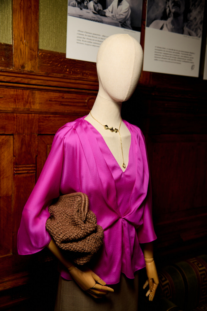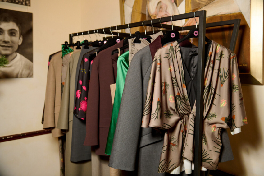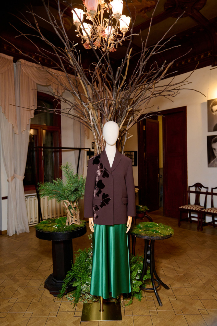 “Совершенство форм природы, спокойствие и умиротворение мы хотели передать в коллекции: в крое, драпировках, оттенках. Земляной коричневый, бежево-серый, глубокий синий и травянистый зеленый с акцентной фуксией - все цвета как будто вышли из хвойного леса, в глуши которого спряталось озеро с кувшинками и цветочными полянами вокруг. Силуэты — прямые на контрасте с приталенными, подчеркивающие женственность и женское начало,” - говорит Анастасия Рябоконь.