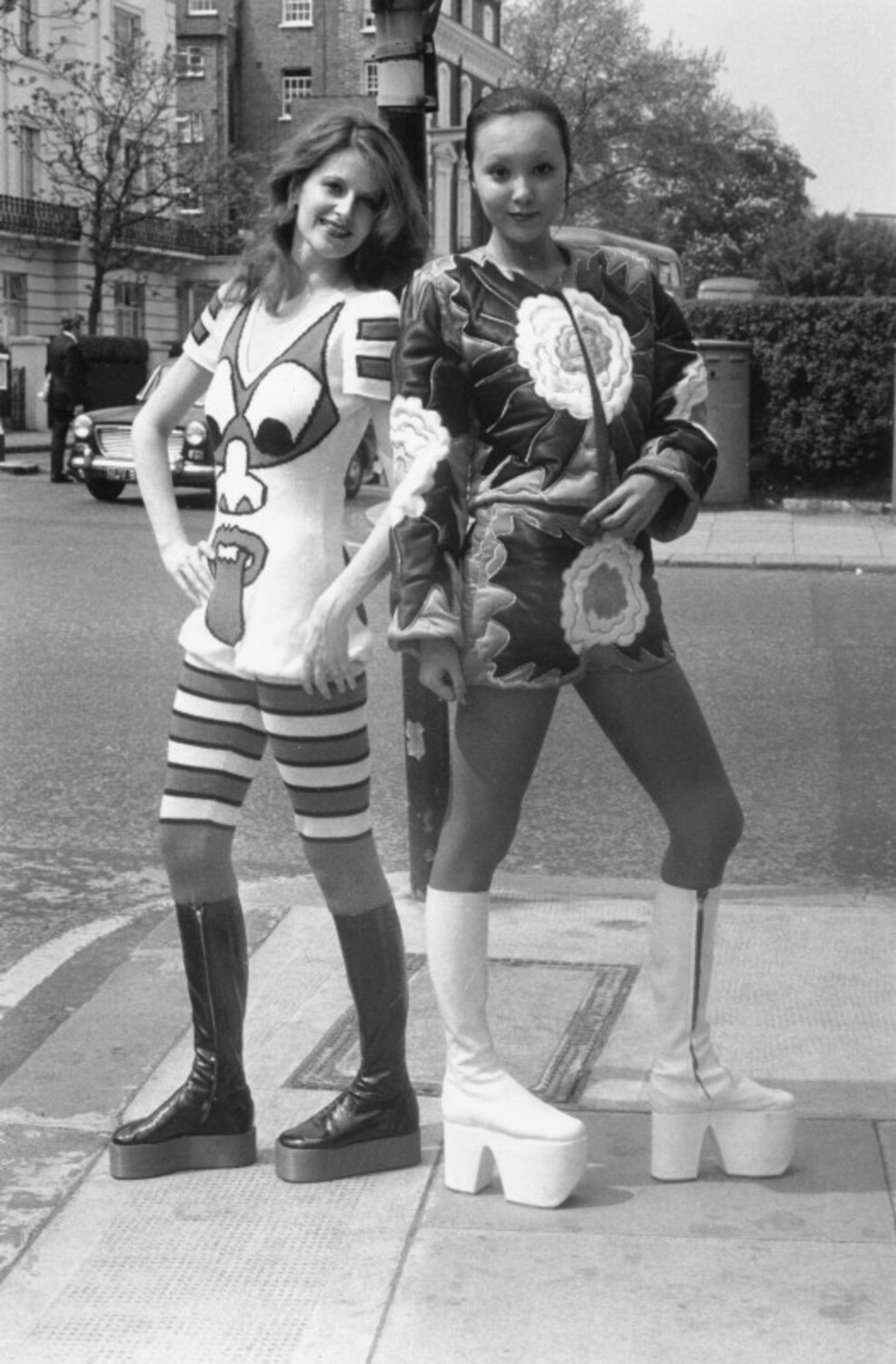 Платформы в стиле 1970-х годов1975 годКогда считалось, что восьмисантиметровая шпилька не может стать еще более неудобной, 2000-е принесли более сложную задачу: несколько сантиметров добавились на всю платформу. Это был золотой век Шарлотты Олимпии и тех невероятных образов, которые носили все знаменитости. В 2021 году туфли на платформе — это меньше Олимпии и больше про обувь Бьянки Джаггер, которую она выбрала для концерта 1975 года. Moschino продемонстрировали босоножки в стиле ретро, а Versace — более красочную сторону тренда. Итальянский бренд изготовил из атласа двойную платформу спереди, чтобы приспособить ее под широкий скульптурный каблук.
