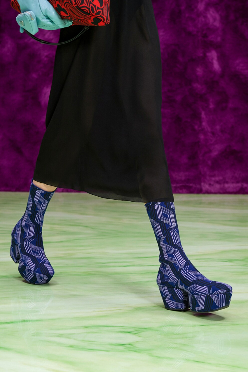 Согласно данным Lyst, несмотря на пандемию, платформы показывают растущую тенденцию: с 2019 по 2020 год поисковые запросы на портале увеличились на 26%, а с 2020 по 2021 год цифры еще выше - рост поисковых запросов увеличился на 183%. Это дает понять, что то, что изначально считалось альтернативой плоскому ходу, исследует обновленную идентичность, снова обращаясь к экспериментальной моде 1960-х годов и ярким аксессуарам, которые определяли гардероб 1970-х годов.
