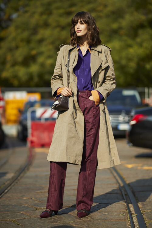 Модницы надевали украшенные узорами ботильоны-чулки на платформе, куртки-бомберы в паре с юбками в складку, уютные трикотажные платья с маскулинными жакетами, шерстяные брючные костюмы с лоферами на массивной подошве, а также всевозможные тренчи и пальто – от кожаных вариантов до ярких объемных моделей. Vogue.ua собрал самые актуальные образы гостей на Неделе моды в Милане.