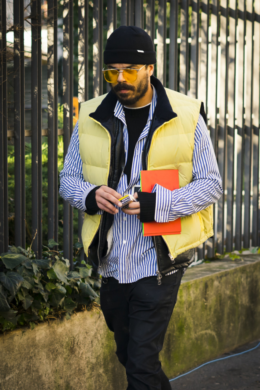 Жилет можно носить в различных стилистических комбинациях. К примеру, плотно набитая утеплителем модель может стать дополнительным слоем под водонепроницаемым плащем или пальто. Более легкие версии выступят самостоятельным элементом образа и добавят к нему текстуры, цвета или акцентов. Жилет нашел свое законное и респектабельное место на полках мужской одежды благодаря растущей популярности стилей нормкор, горпкор и преппи, а также множеству хорошо одетых миланских мужчин, которые носят их последние пару сезонов.