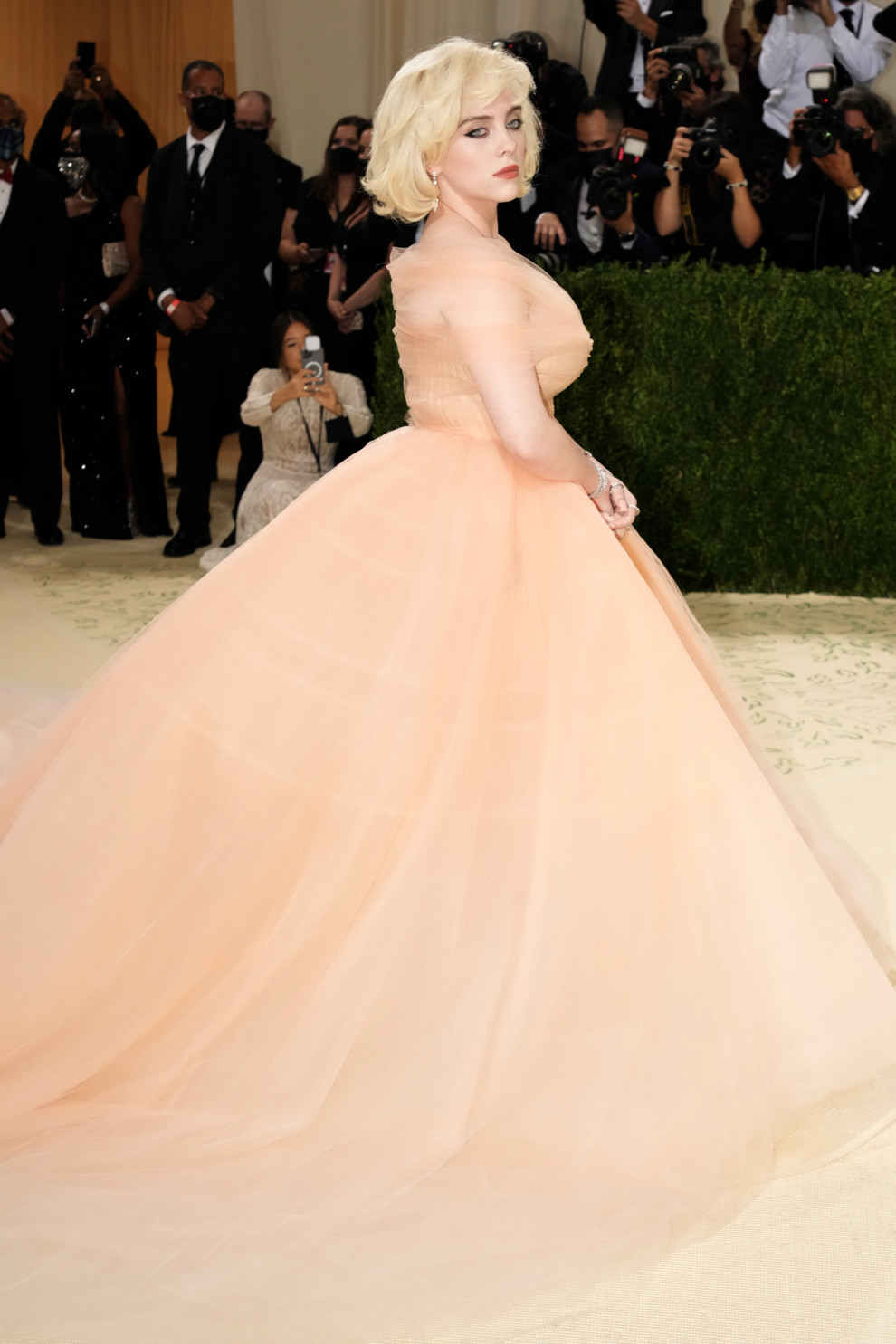 Билли Айлиш vs. Мэрилин Монро19-летняя певица Билли Айлиш долго скрывала собственную сексуальность под безразмерными худи и футболками, однако ее обложка для британского Vogue открыла миру совершенно другую Билли. После такого радикального перевоплощения поклонники гадали, в чем же их любимая артистка появится на Met Gala – и ей снова удалось всех удивить. Источником вдохновения для стилистов Айлиш стала легендарная Мэрилин Монро – ее знаменитые белоснежные локоны и нежные платья в стиле 1950-х ожили в этот вечер как никогда правдоподобно.