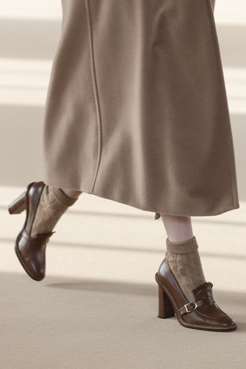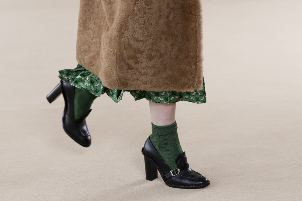 Max MaraЛоферы - универсальная и базовая обувь осеннего сезона, которая ассоциируется с мужским гардеробом. Однако ее легко вписать и в женский дресс-код, сочетая как с брючными костюмами, так и с элегантными платьями, юбками в складу и блузами. В этом сезоне осень-зима 2021/2022 этот обувной тренд покорил сердца дизайнеров, однако были внесены небольшие изменения в дизайн модели. Теперь бренды предлагают обзавестись в сентябре лоферами на каблуках и массивной платформе. Высокие версии лоферов можно встретить в коллекциях Max Mara, Tod’s и Versace.